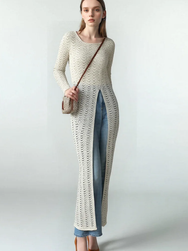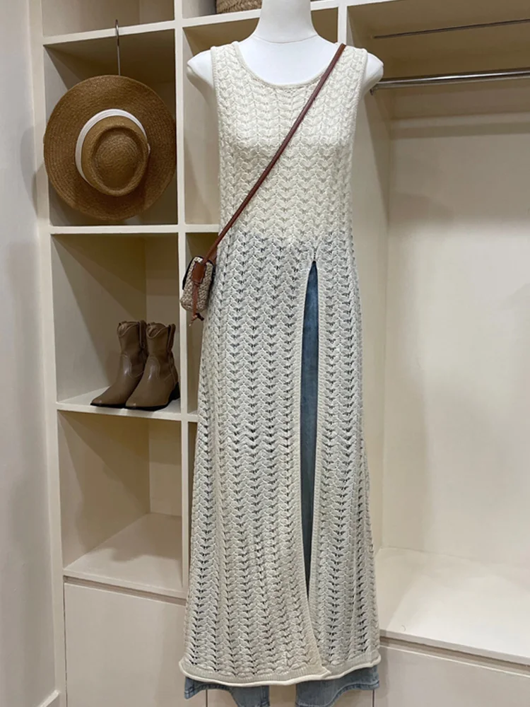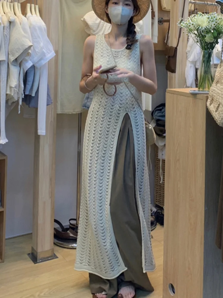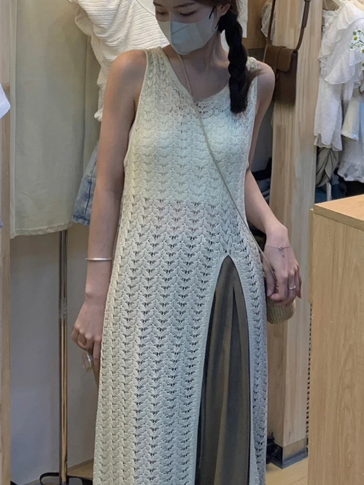 Fleepmart New Fashion Knitted Sexy Split Dress for Women Summer Casual Holiday Bandage Beach Dress O Neck Sexy Evening Party Dresses Robe