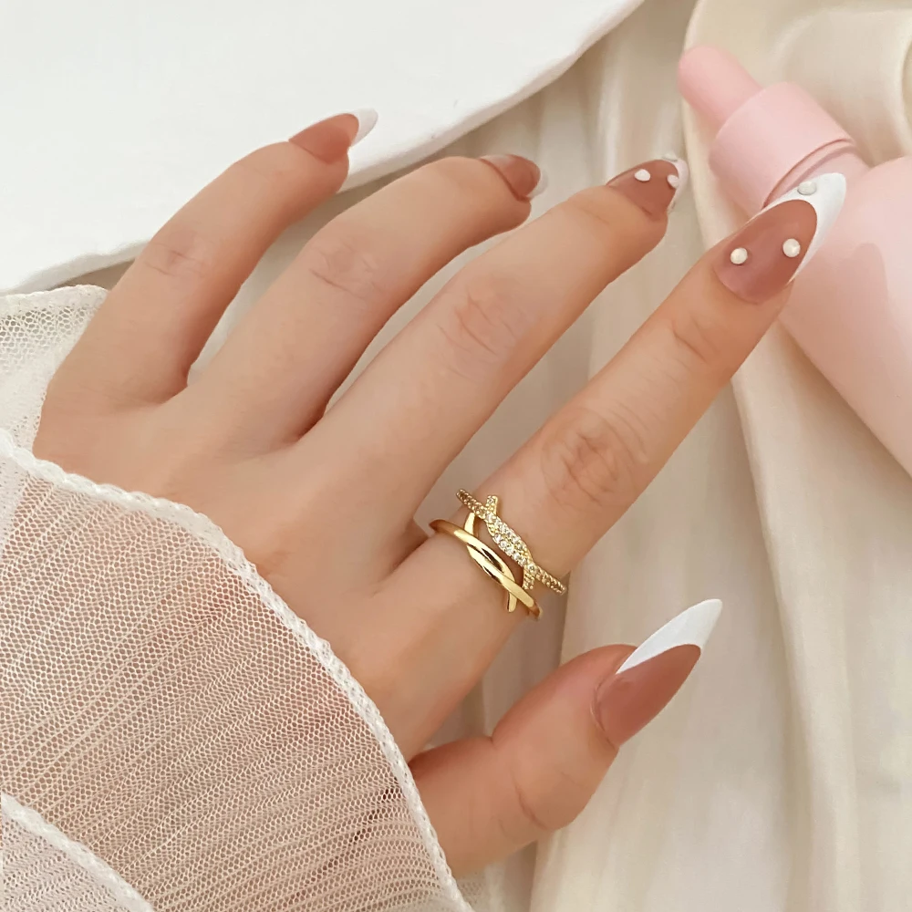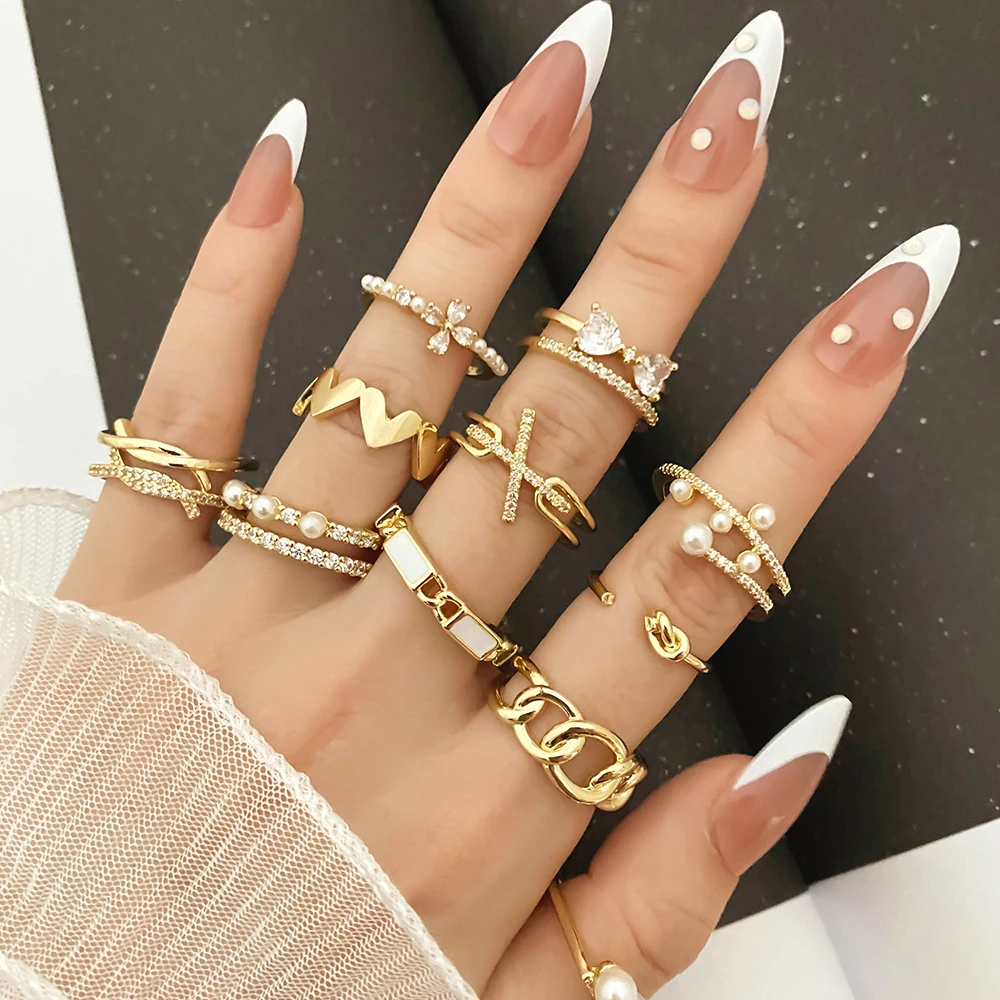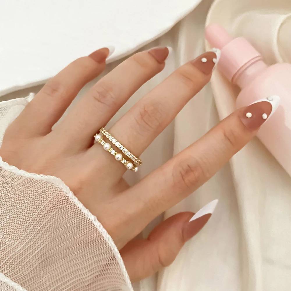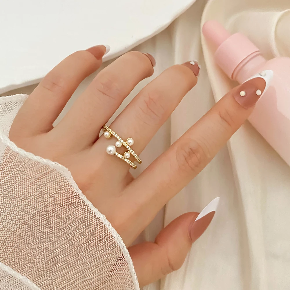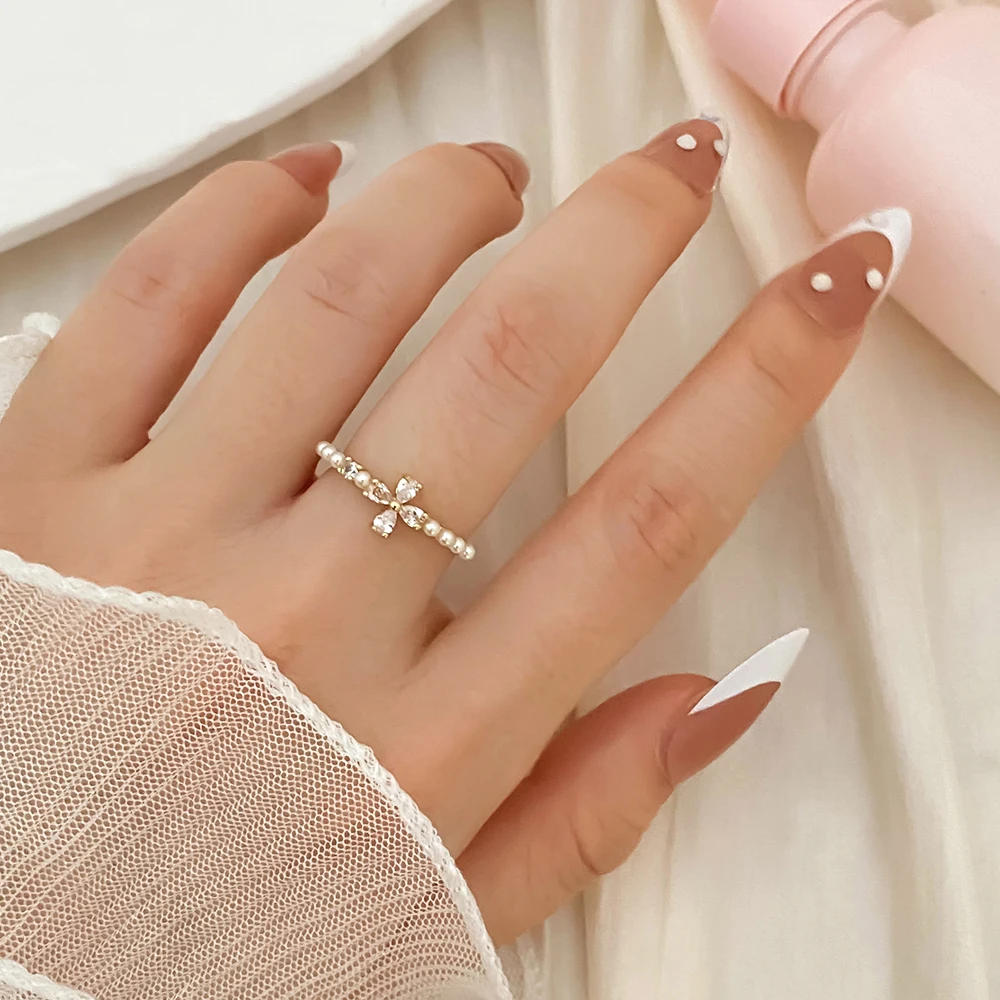 Fleepmart New Fashion Ring for Women Shiny Cubic Zirconia Leaves Geometric Open Pearl Finger Rings Minimalist Dainty Jewlery Gift