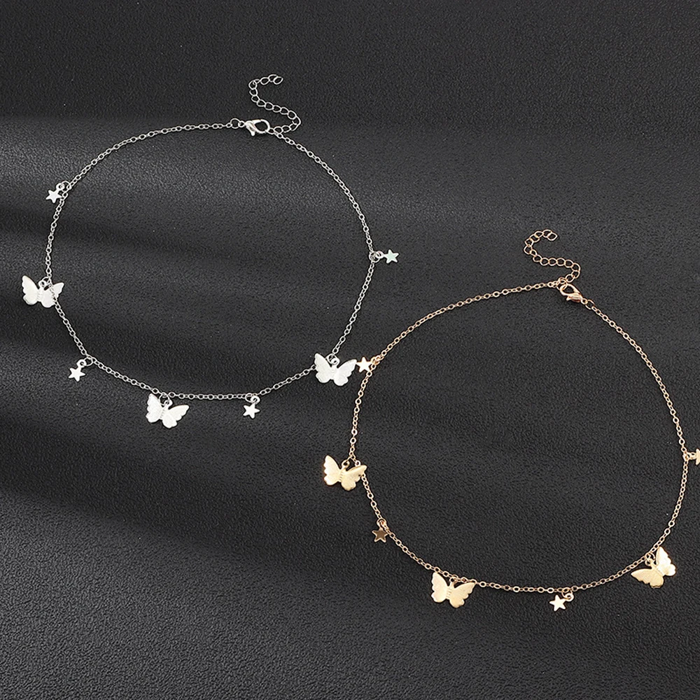 Цепочкой довольна, сначала показалось, что она совсем крохотная, но нет, размер идеальный, бабочки элегантно смотрятся на шее, звёздочки дополняют, у них немного странный отлив, возможно, мелкая грязь, а, может быть, и материал такой, но это незаметно, если не высвечивать фонариком.