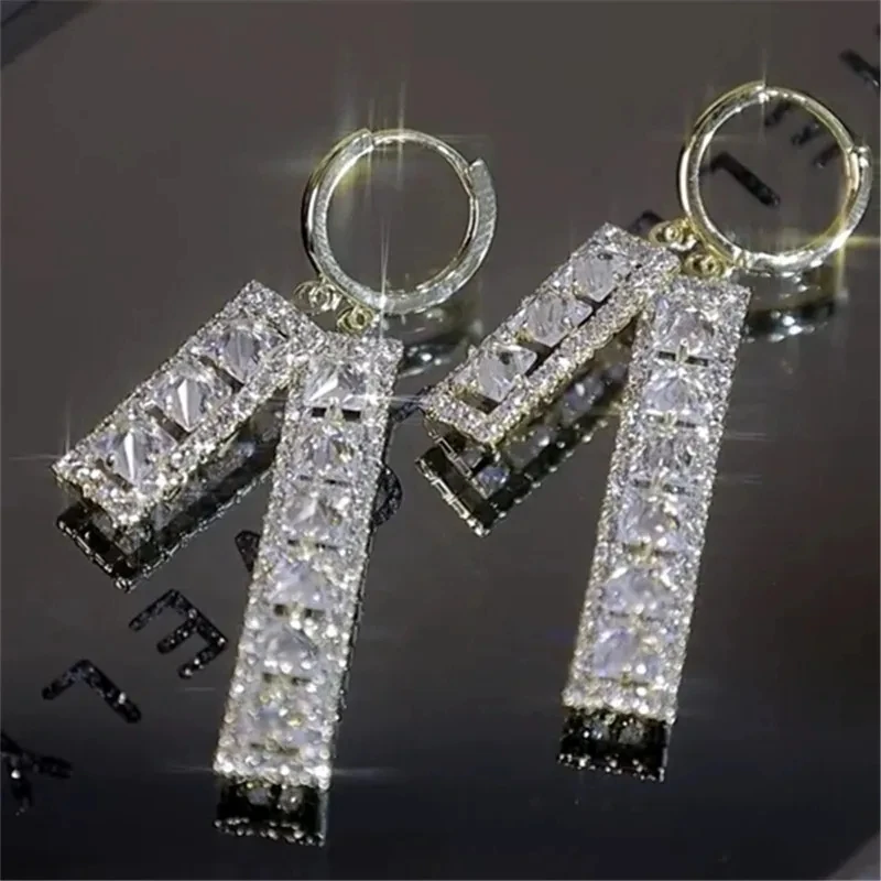 Fleepmart New Fashion Trend Unique Design Elegant and Exquisite Rectangular Zircon Earrings For Women Jewelry Wedding Party Premium Gifts