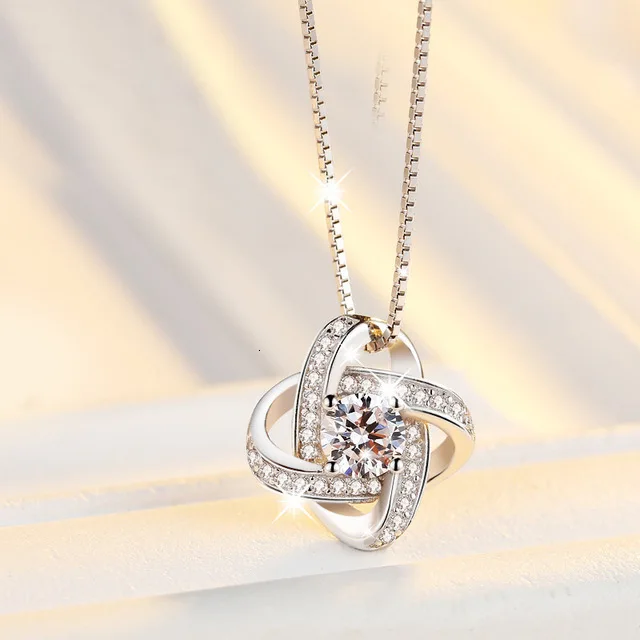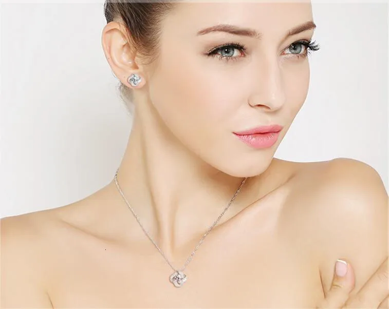 Fleepmart New Four Leaf Clover Choker Necklace Jewelry Flower 925 Silver Pendants Necklaces Chain Birthday Gift For Women