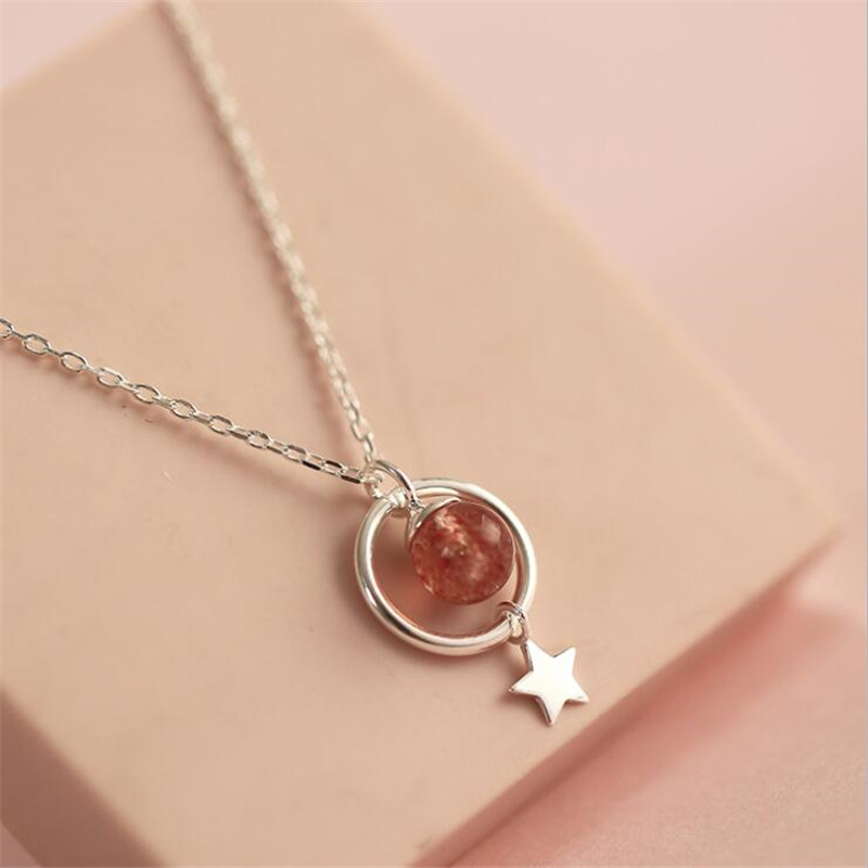 Fleepmart New Fresh And Lovely Stars Strawberry Pink Crystal Silver Plated Jewelry Magic Circle Women Pendant Necklaces