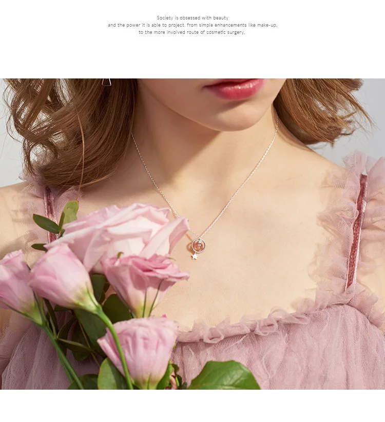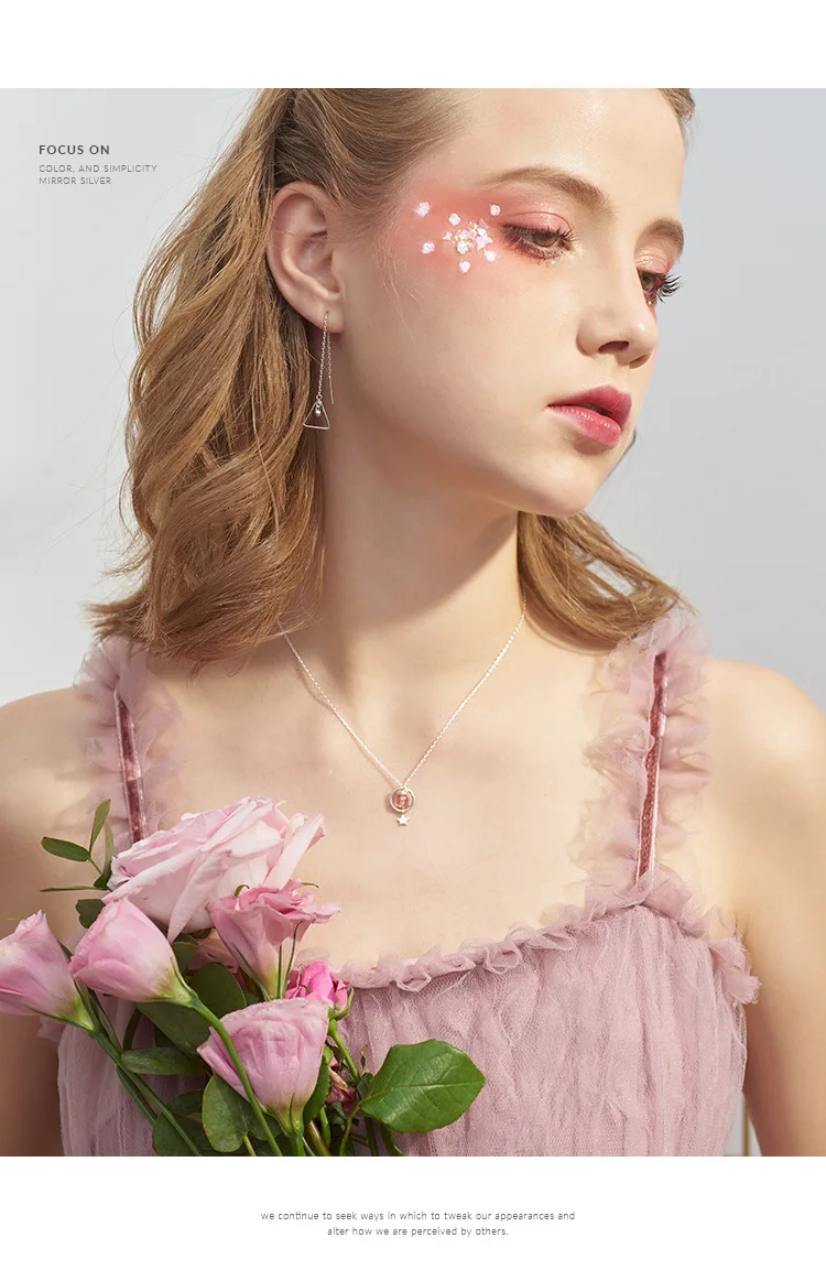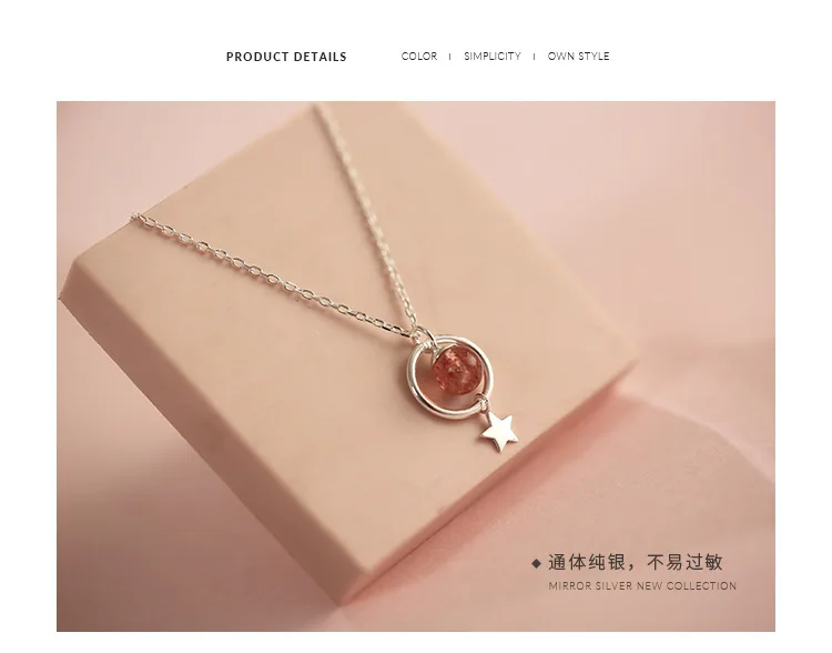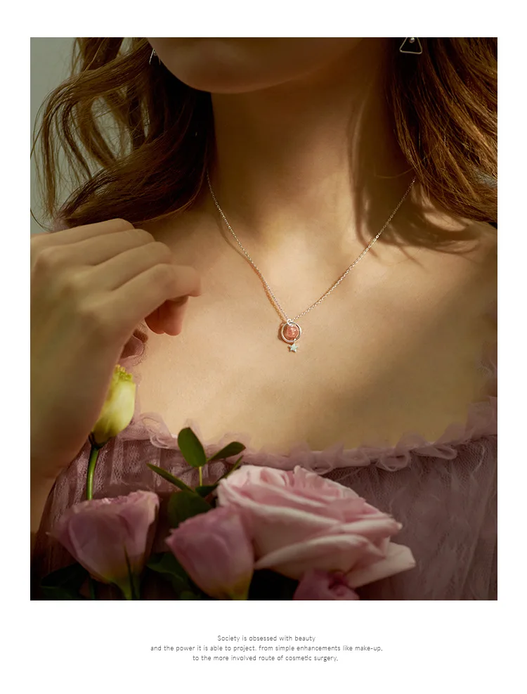 Fleepmart New Fresh And Lovely Stars Strawberry Pink Crystal Silver Plated Jewelry Magic Circle Women Pendant Necklaces