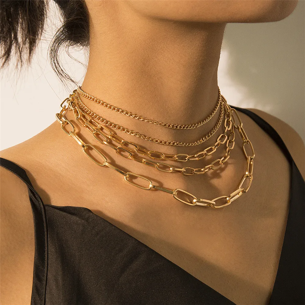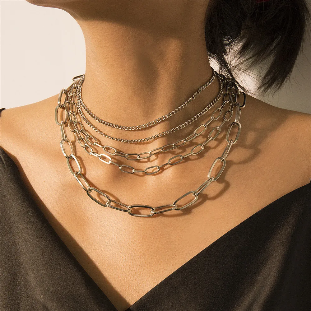 Fleepmart New Hip hop Multi Layer Choker Necklace Collar Punk Chunky Chain Necklace Vintage Handmade Carnival Jewelry for Women
