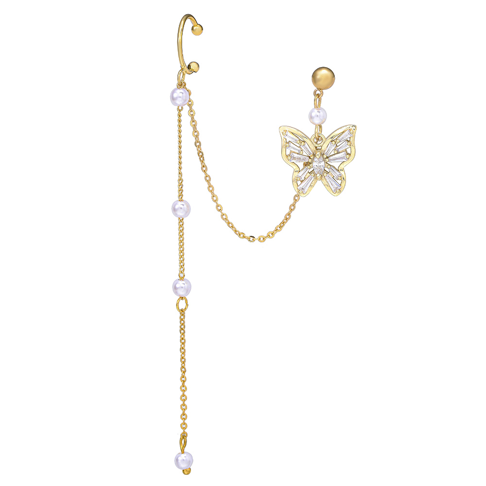 Fleepmart New Korean Butterfly Ear Clip Earrings Fashion Rhinestone Pearl Chain Drop Earrings for Women 2022 Wedding Jewelry Wholesale