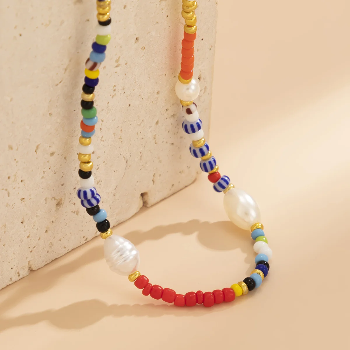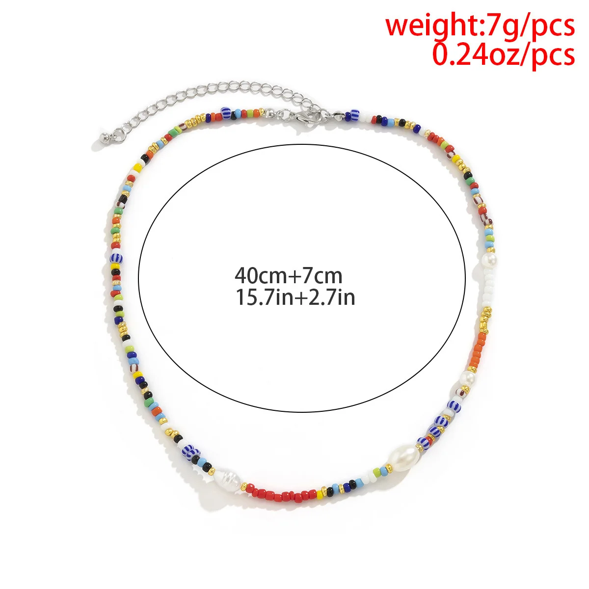 Fleepmart New Korean Fashion Colorful Cute Seed Beads Chain Choker Necklace For Women Baroque Simulated Pearls Beaded Collar Boho Jewelry