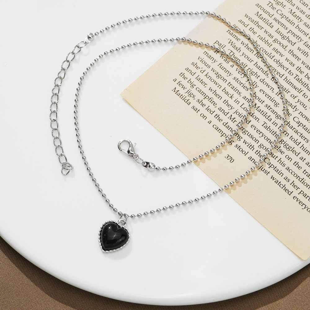 Fleepmart New Korean Silver Color Necklace for Women Beaded Chain Black Heart Pendant Simple Choker Necklaces Fashion Jewelry