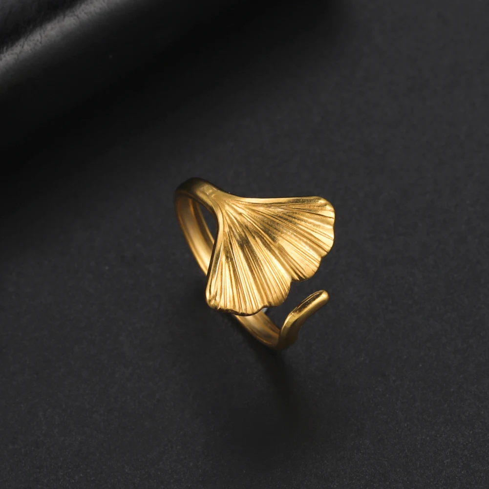 Fleepmart New Leaf Finger Women Stainless Steel Adjustable Gold Color Bohemian Ring 2025 Jewelry