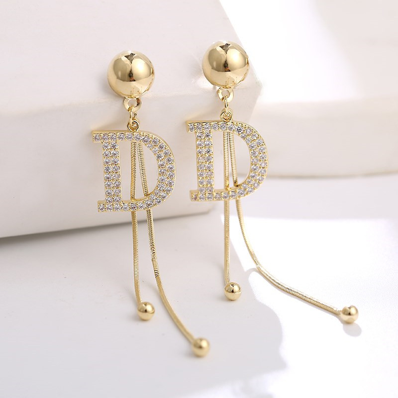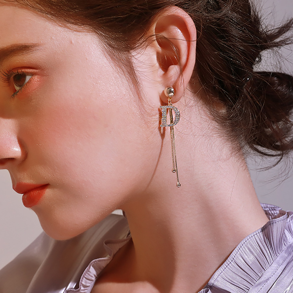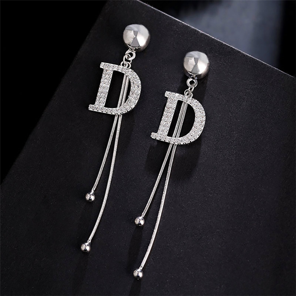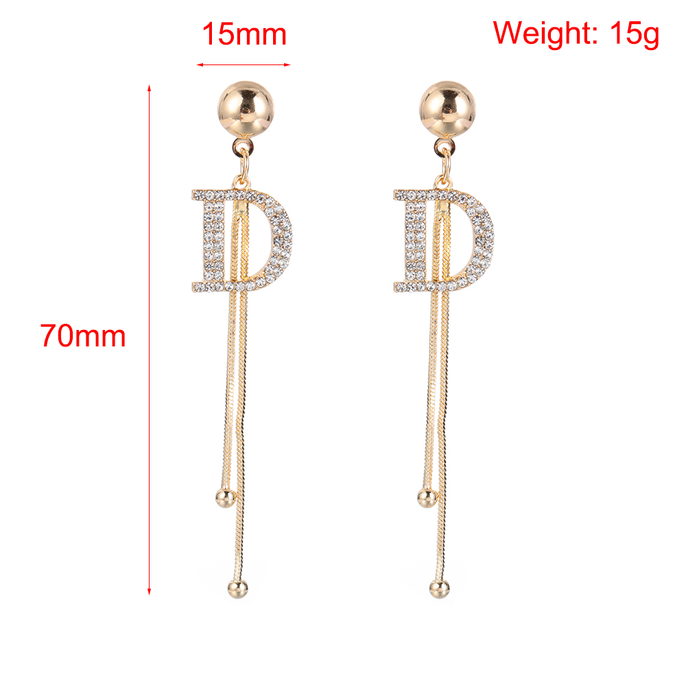 Fleepmart New Long Tassel Letter D Hanging Earrings For Women Fashion Golod Color Crystal Big Dangle Earring Jewelry Party Gift