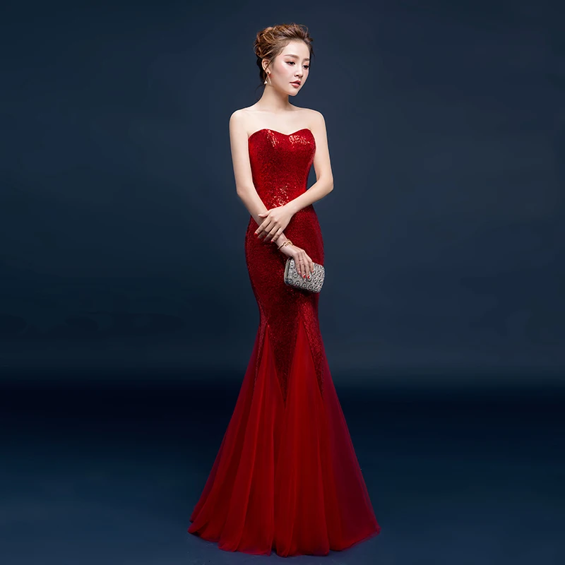Fleepmart New Mermaid Sweetheart Sleeveless Sequined Tulle Lace up Evening Dress Royal Blue vestidos![]()