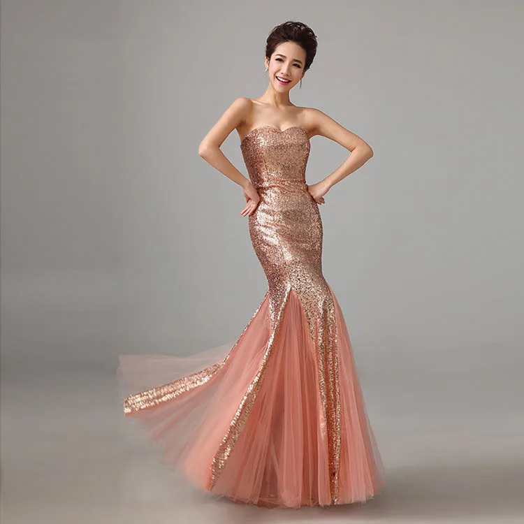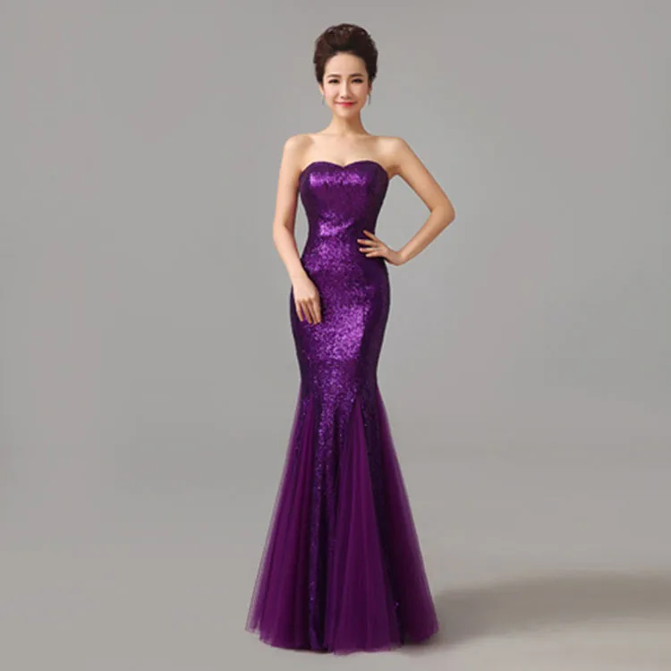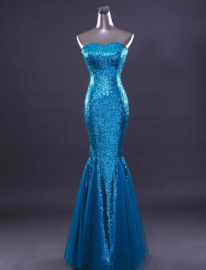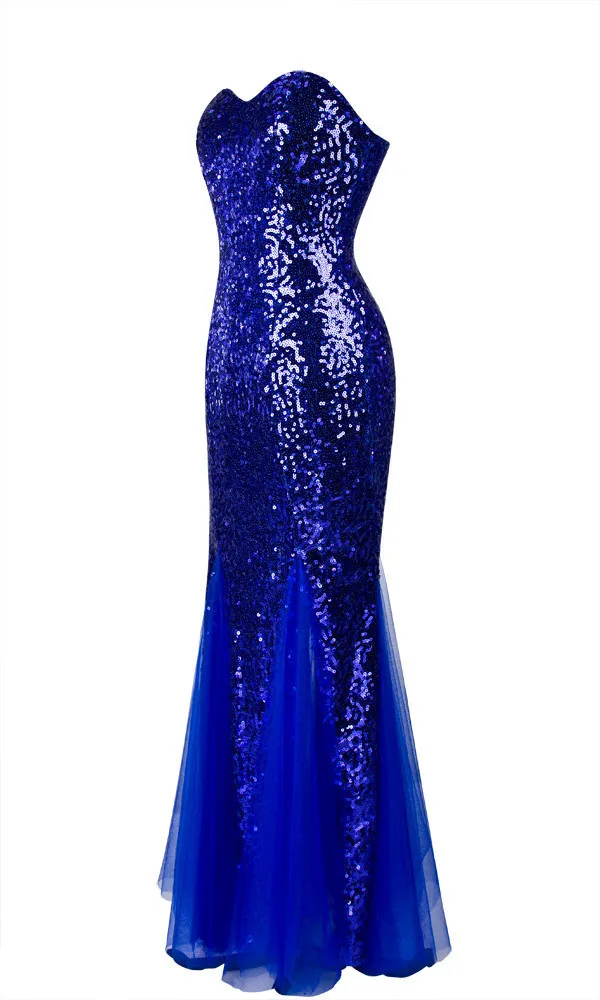 Fleepmart New Mermaid Sweetheart Sleeveless Sequined Tulle Lace up Evening Dress Royal Blue vestidos![]()