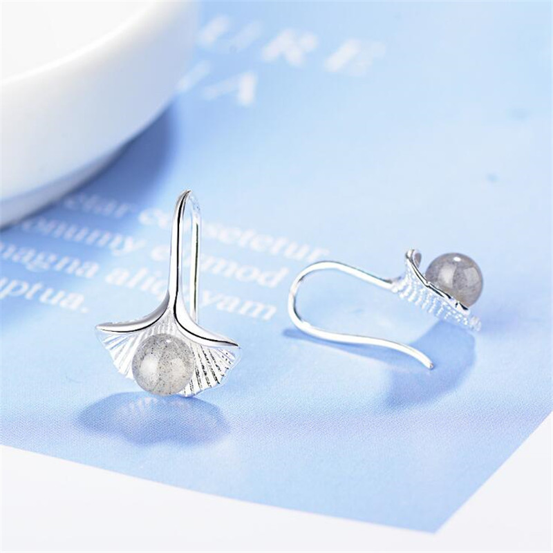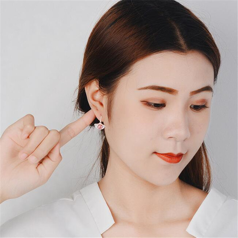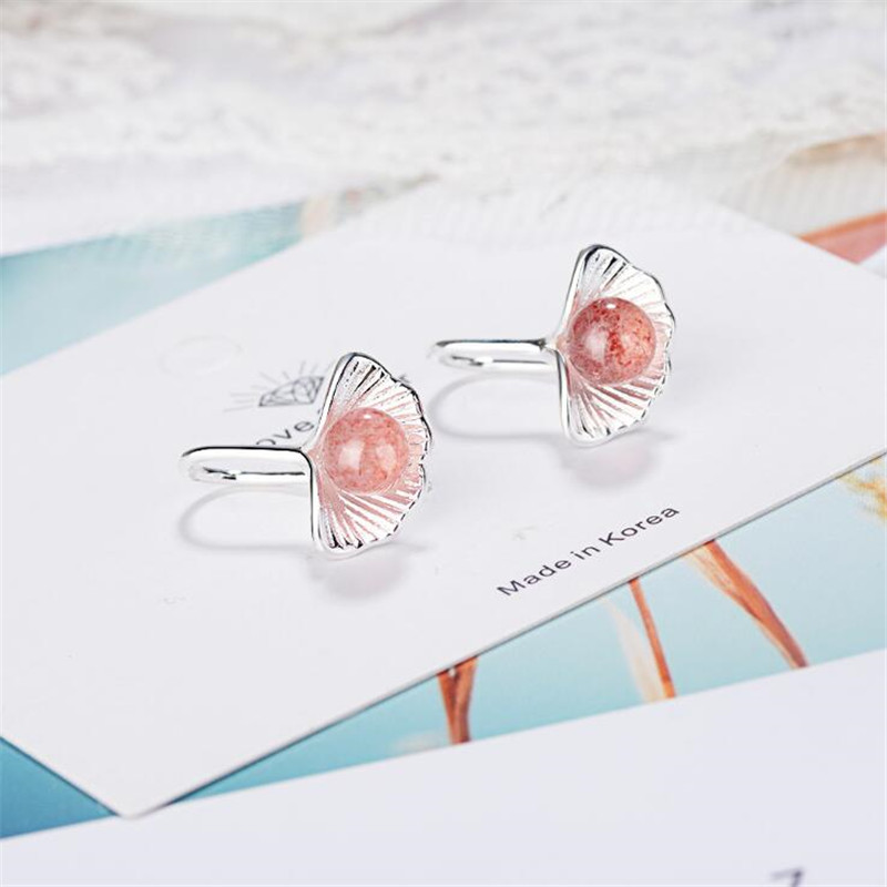 Fleepmart New Natural Creative Ginkgo Biloba Strawberry Crystal Silver Plated Jewelry Pink Ear Hook Design Dangle Earrings