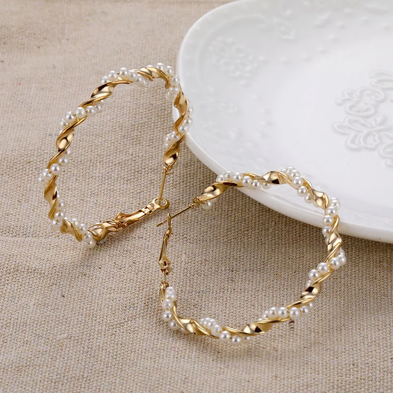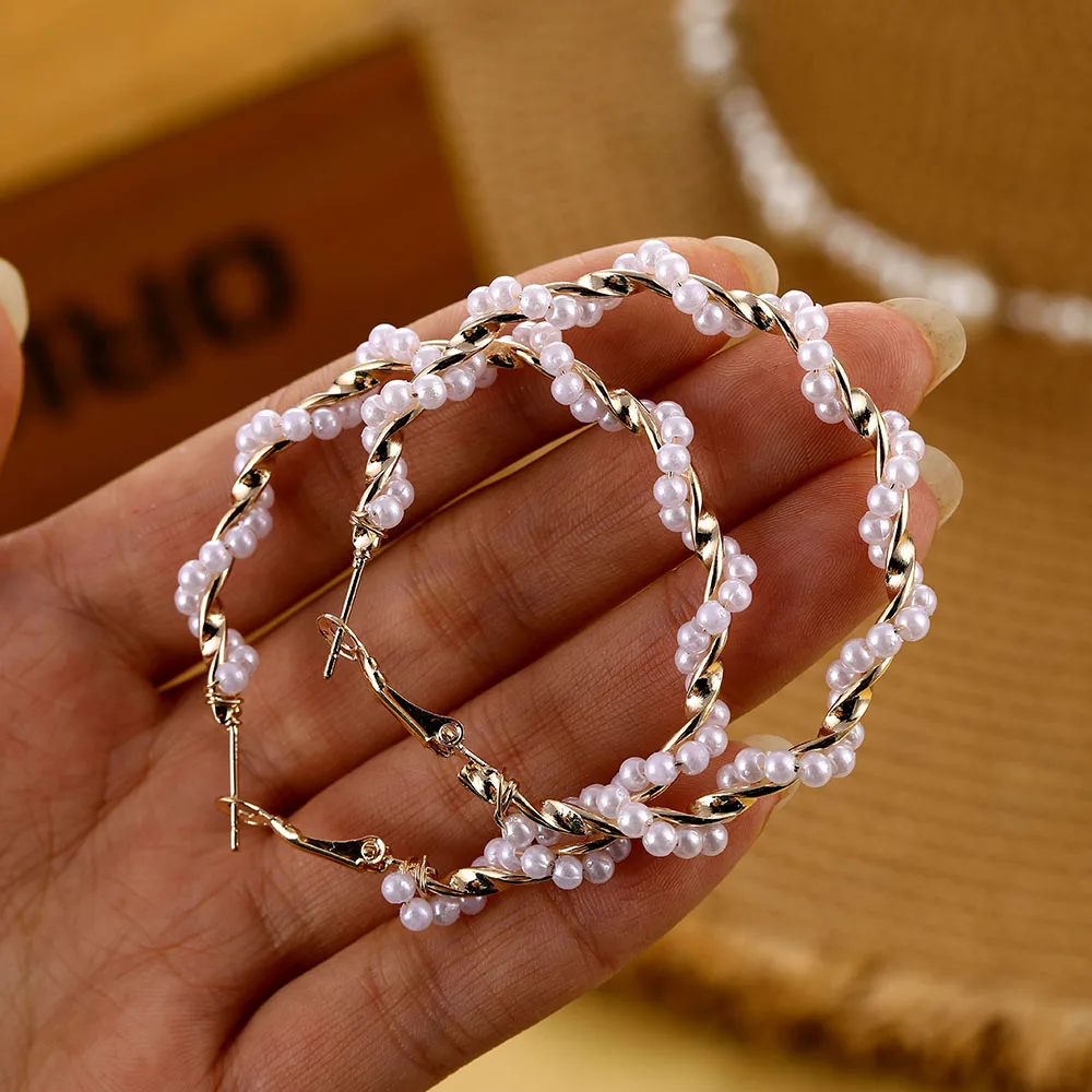 Fleepmart New Oversize Pearl Hoop Earrings for Women Exaggerates Pearl Circle Earrings Fashion Brinco Statement Fashion Jewelry