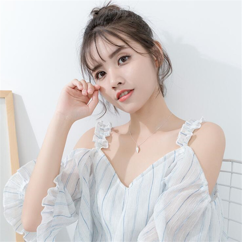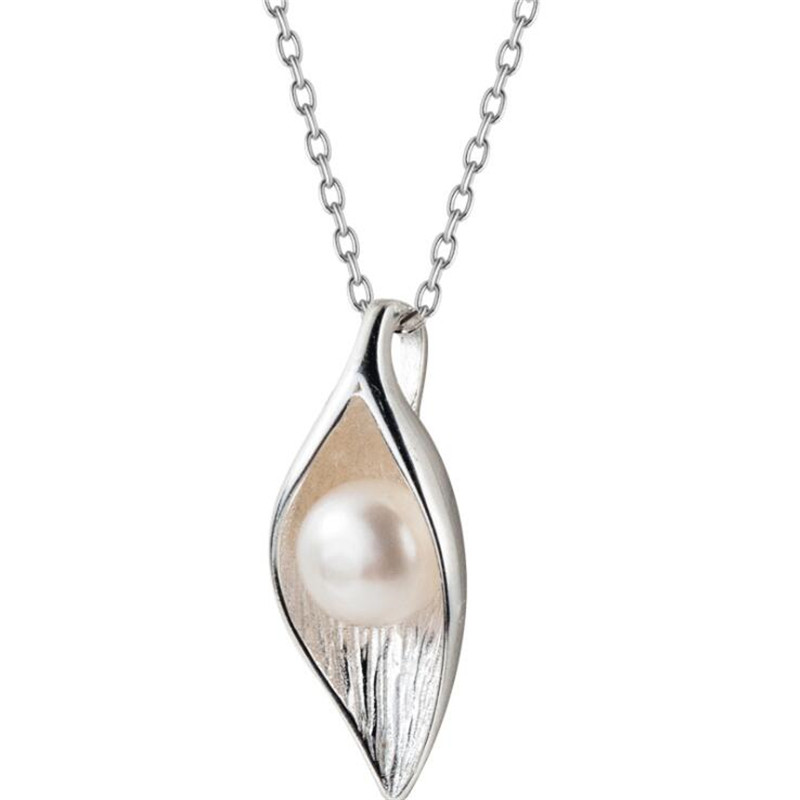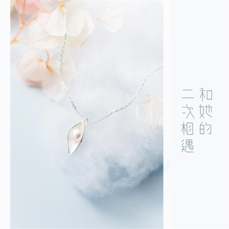 Fleepmart New Personality White Flower Pearl Silver Plated Jewelry Fashion Pearl Leaf Dew Bead Elegant Pendant Necklace