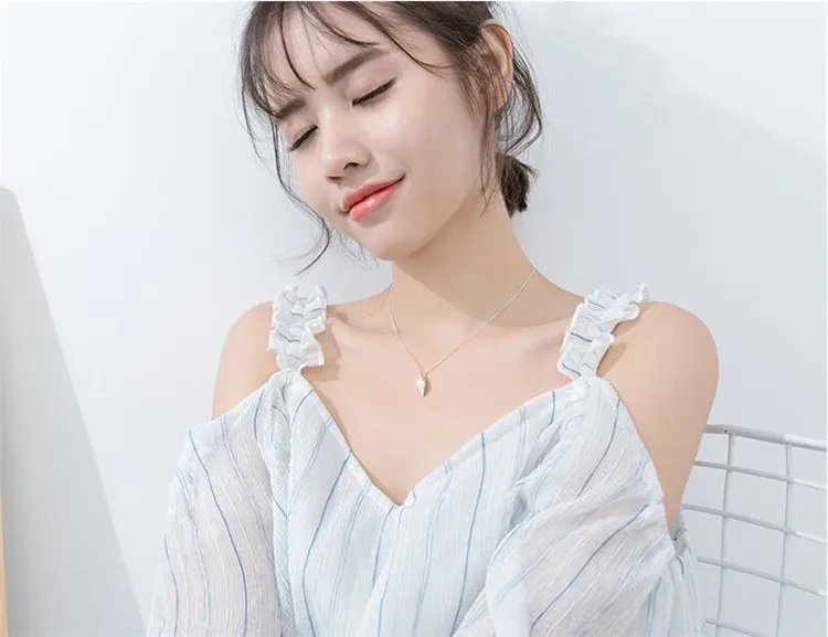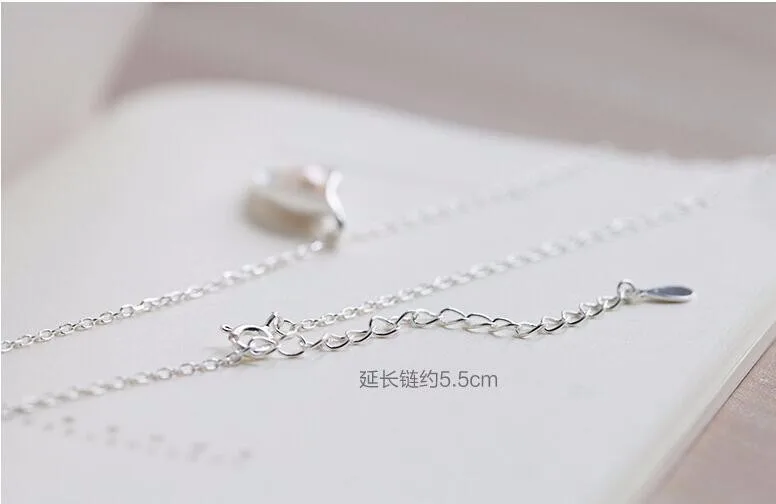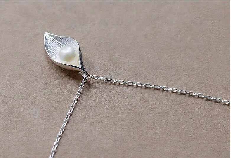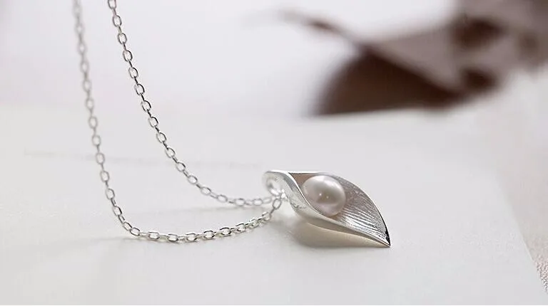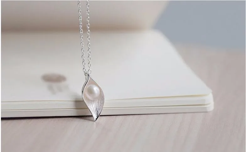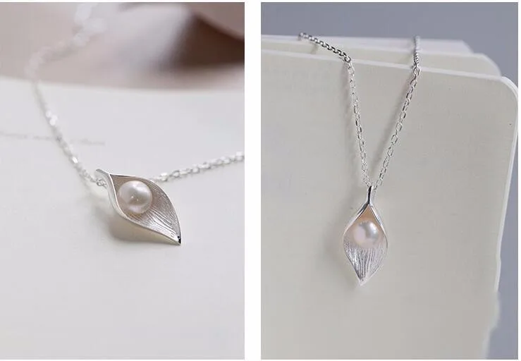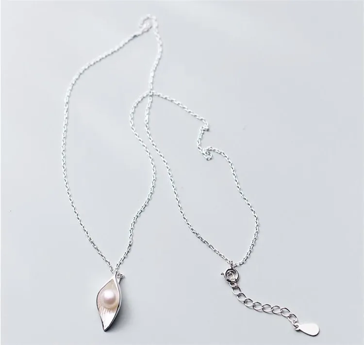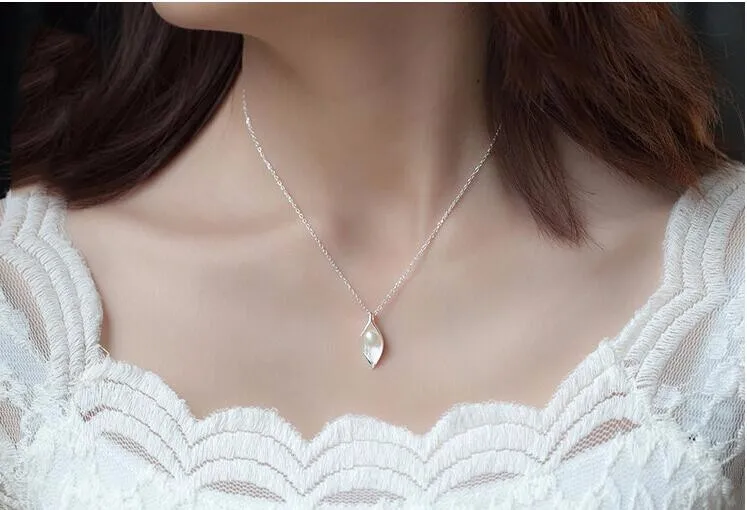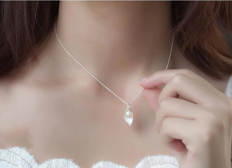 Fleepmart New Personality White Flower Pearl Silver Plated Jewelry Fashion Pearl Leaf Dew Bead Elegant Pendant Necklace