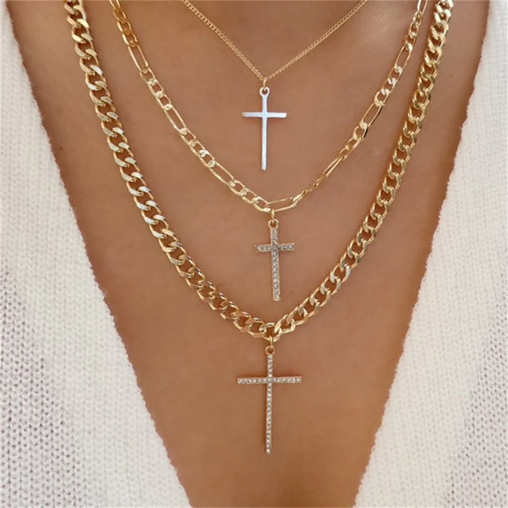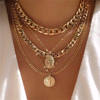 Fleepmart New Punk Gold-plate Thick Geometric Chain Jesus Mary Portrait Coin Pendant Necklace For Women Vintage Fashion Multilevel Jewelry