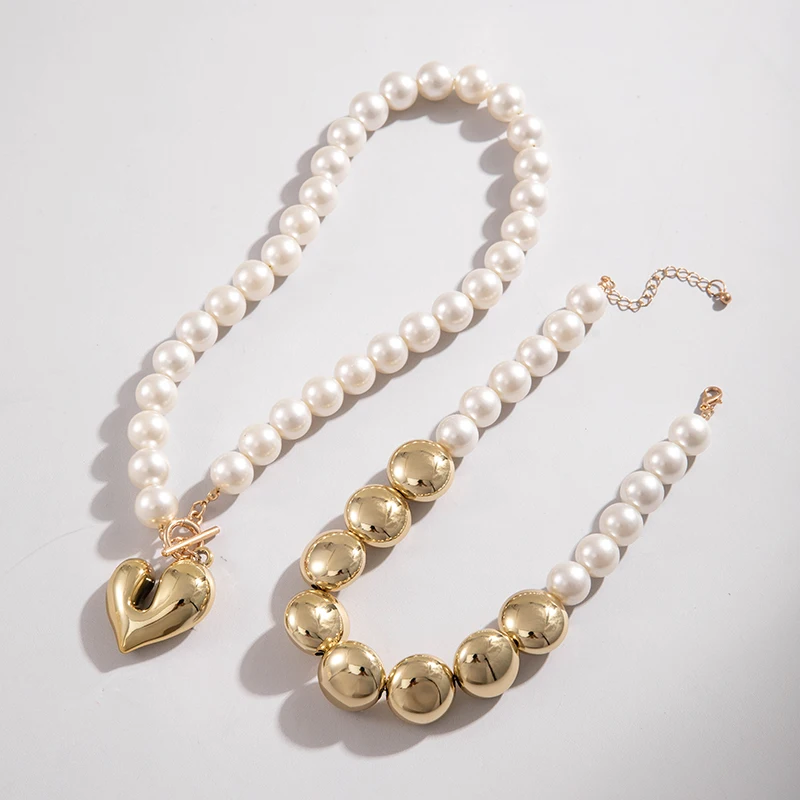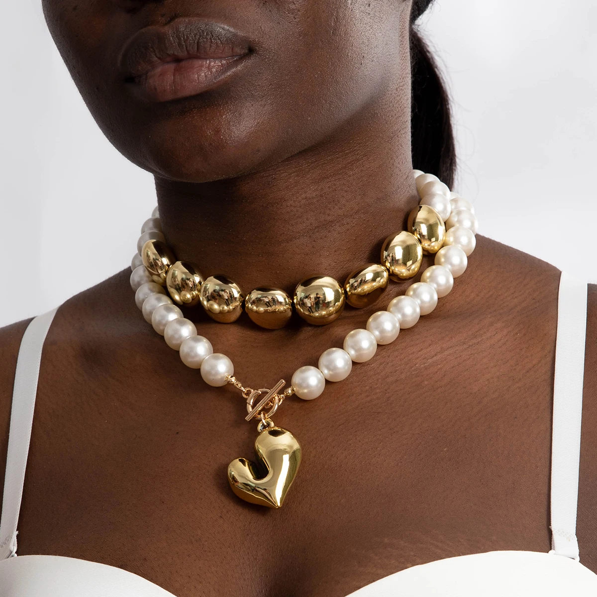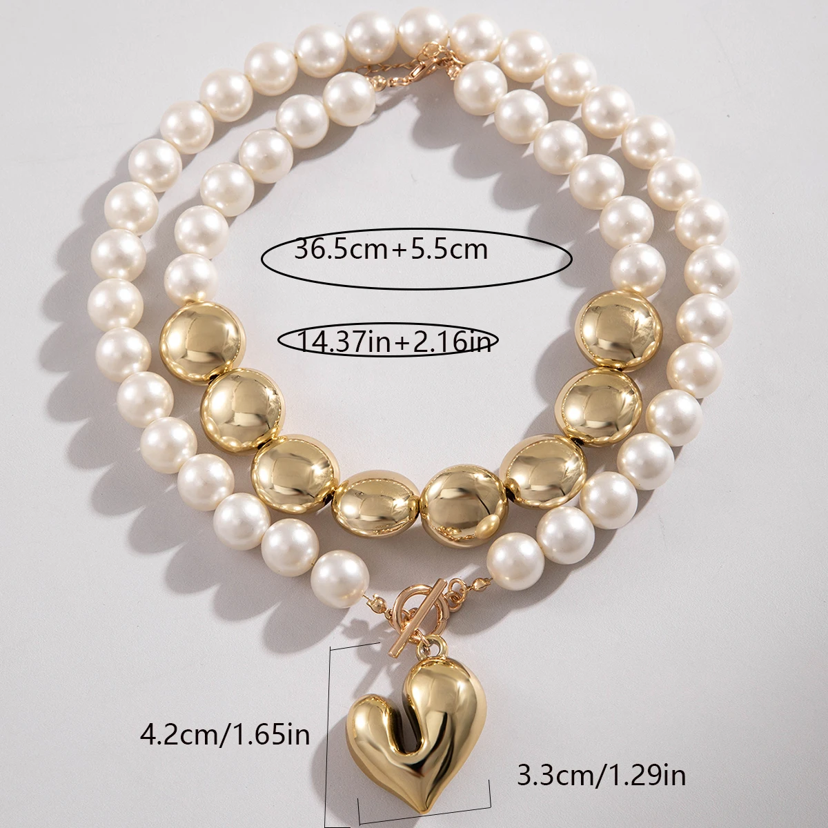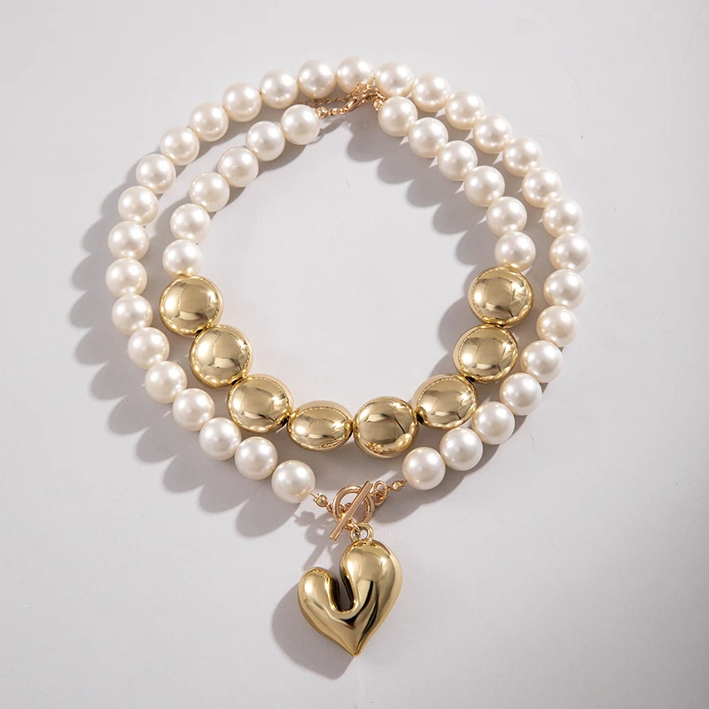Fleepmart New Punk White Colour Bead String Chains Heart Pendant Necklace for Women Choker Collar Neck Jewelry Accessories
