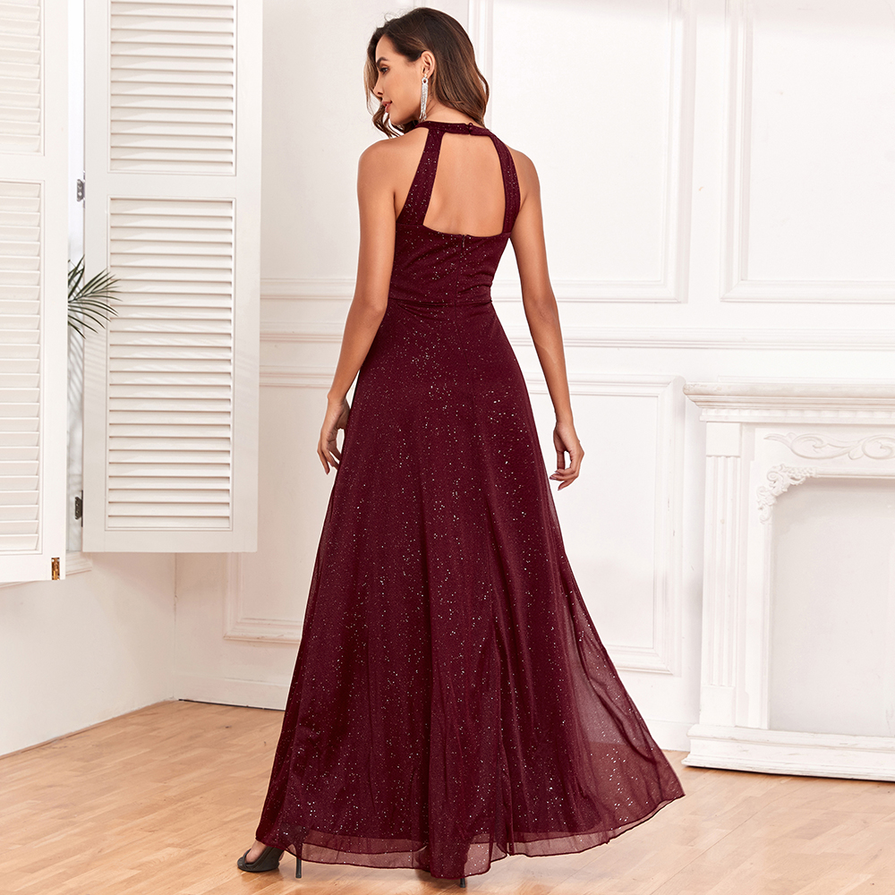 fleepmart New Shinning Party Dress Halter Sleeveless Long Evening Dress A-line Prom Gowns Burgundy Bridesmaid Dress