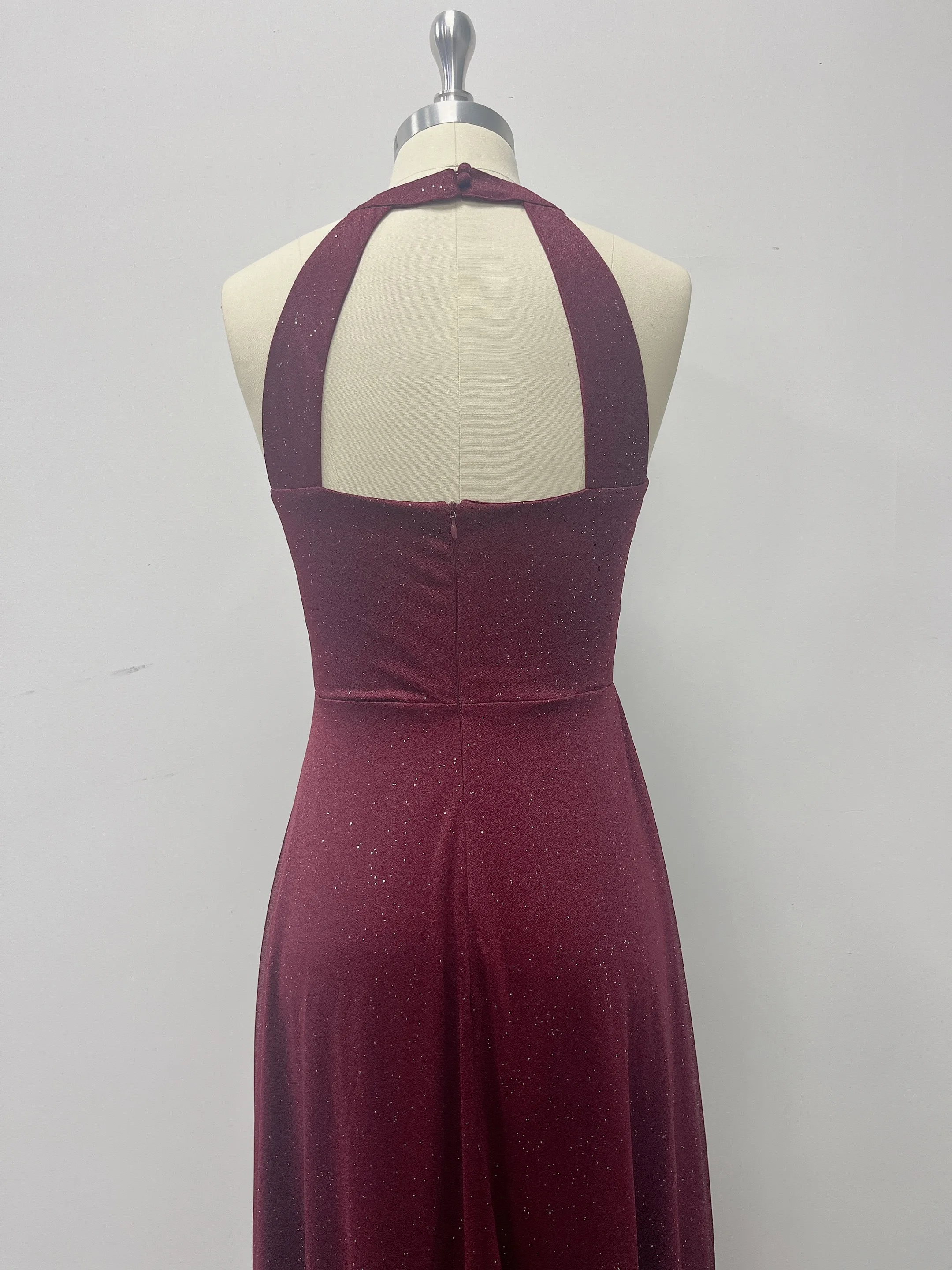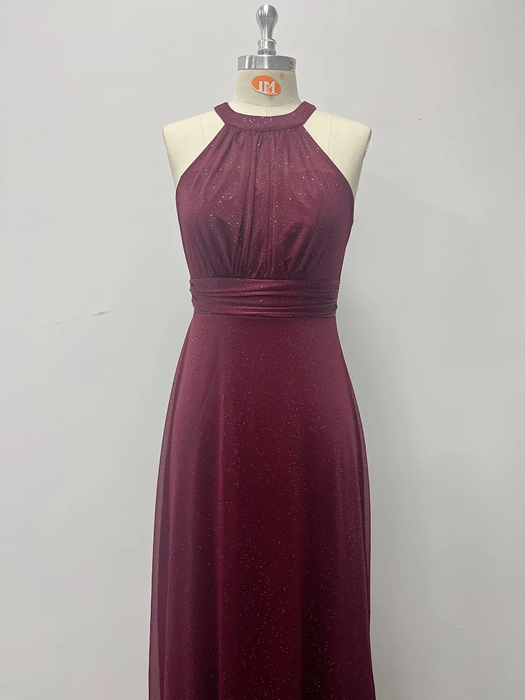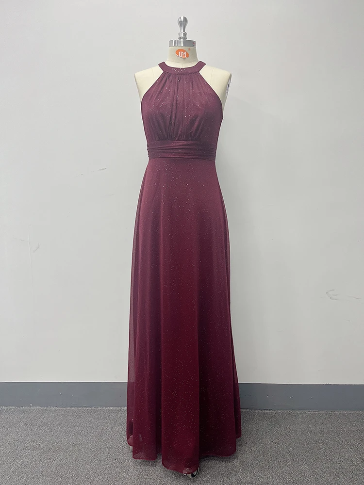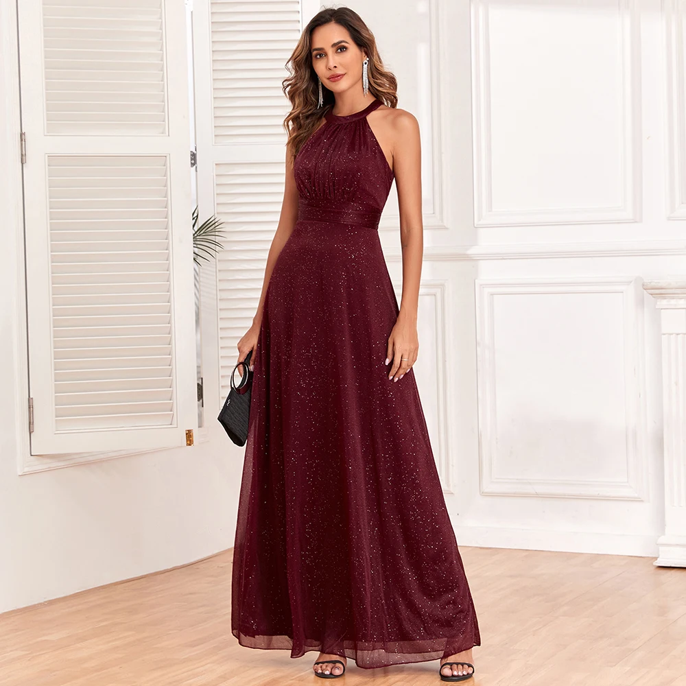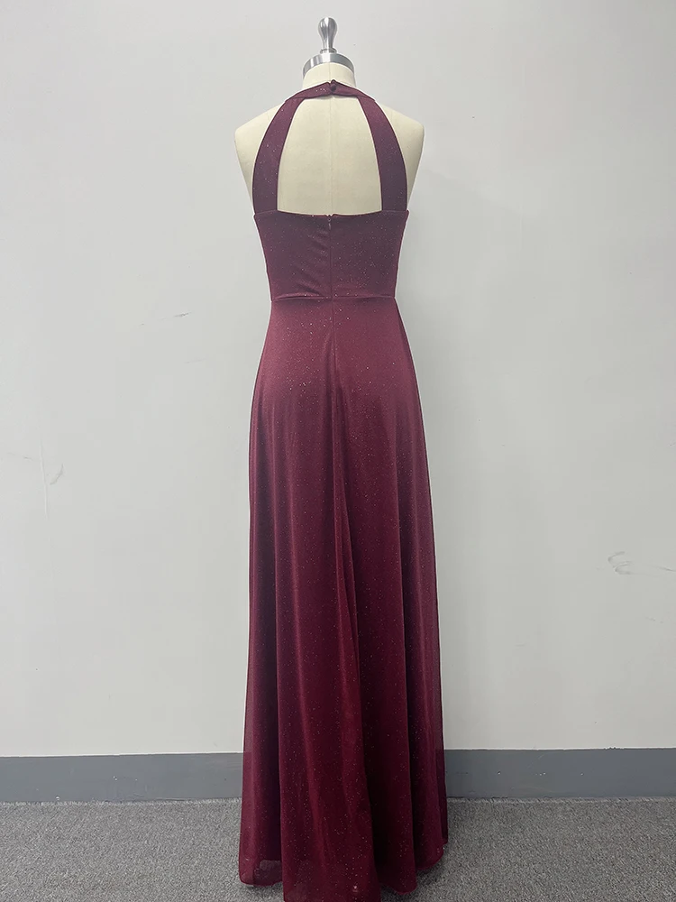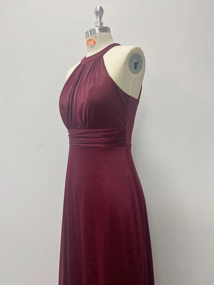 fleepmart New Shinning Party Dress Halter Sleeveless Long Evening Dress A-line Prom Gowns Burgundy Bridesmaid Dress