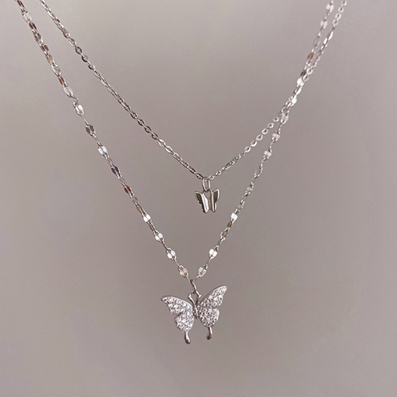 Fleepmart New Shiny Butterfly Necklace Ladies Exquisite Double Layer Clavicle Chain Necklace Jewelry for Ladies Gift