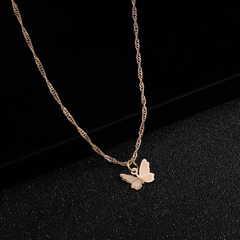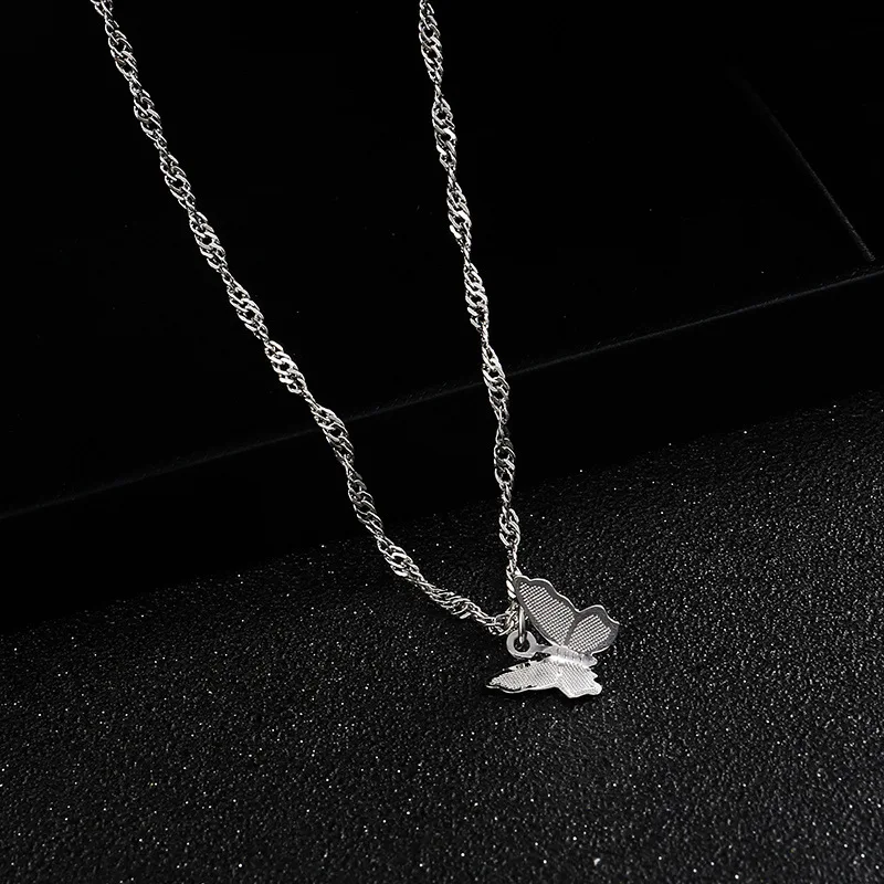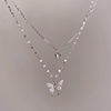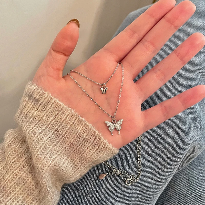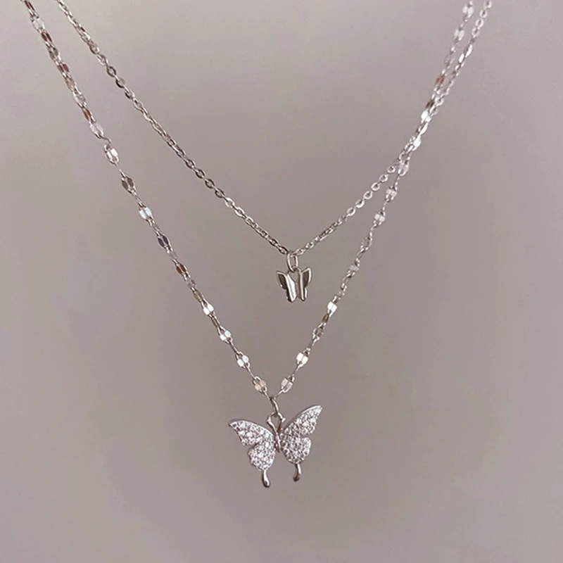 Fleepmart New Shiny Butterfly Necklace Ladies Exquisite Double Layer Clavicle Chain Necklace Jewelry for Ladies Gift