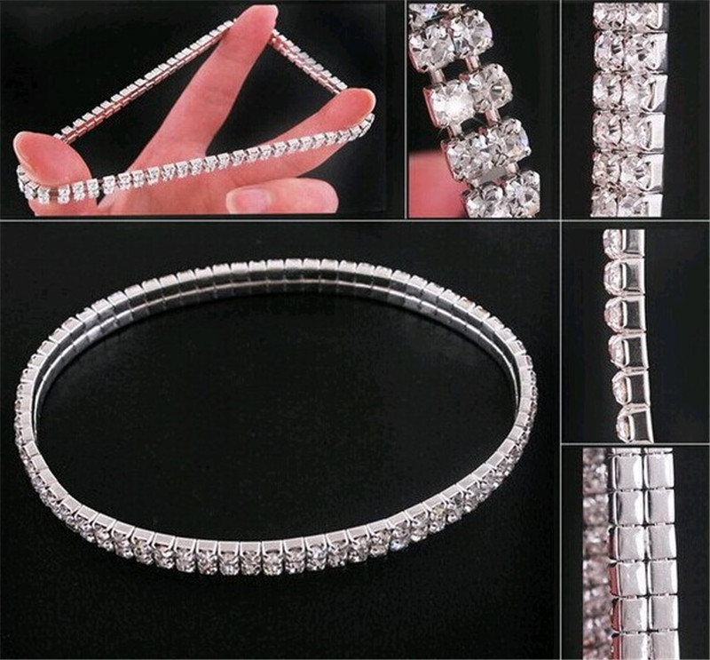 Fleepmart New Silver Color Stretchy Rows Bracelet Anklet Ankle chain Rhinestones Foot Jewelry
