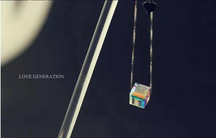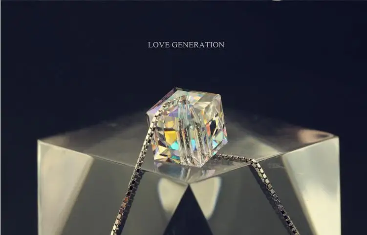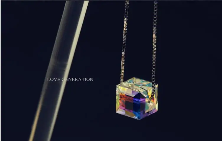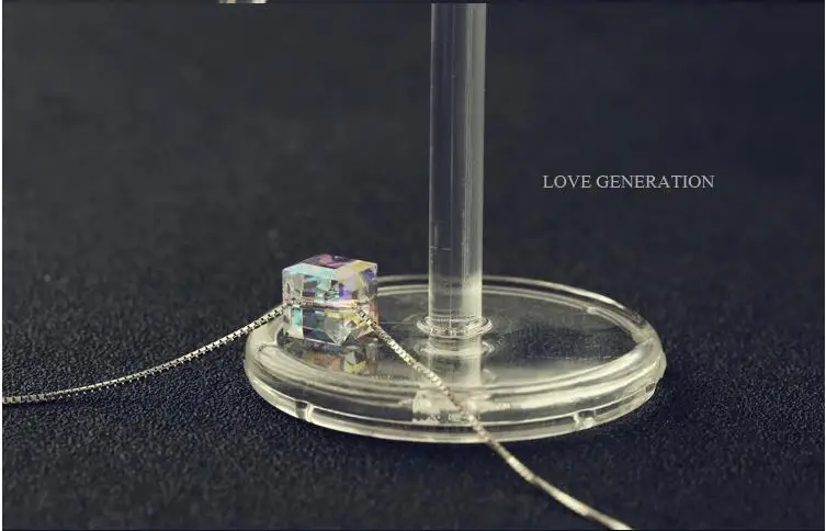 Fleepmart New Silver Plated Jewelry Fashion Genuine Light Candy Square Crystal Clavicle Chain Female Pendant Necklaces