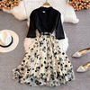 Fleepmart New Spring Women Blazer Collar Embroidery Flower Mesh Patchwork Party Dresses Fashion Black Vintage Hepburn Tulle Dress
