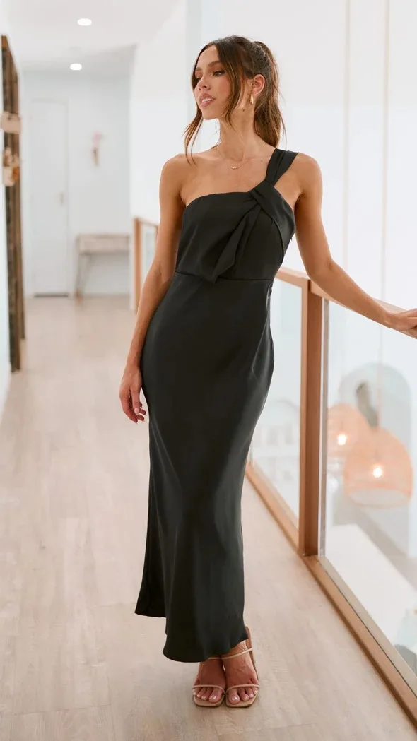 Fleepmart New Style Elegant One Shoulder Solid Color Bra A-line Dress Slim Fit Fashion Party MIDI Evening DressThere are no reviews yet