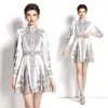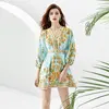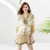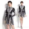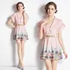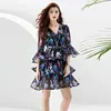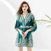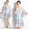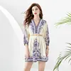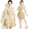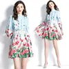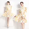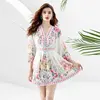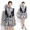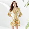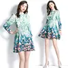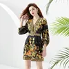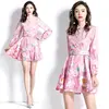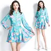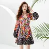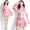 Fleepmart New Summer Fall Fashion Retro Vintage Floral Print Ruffled Stand Neck Belt Puff Sleeve Women Ladies Party Mini Short Shirt Dress