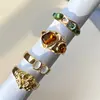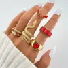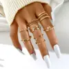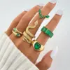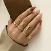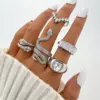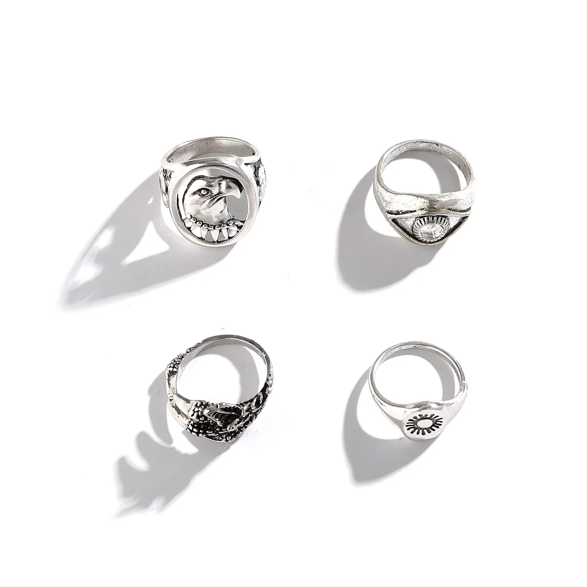 Fleepmart New Tide Individuality Retro Geometric Hollowing Inlay Gem Rings SetLiquid State Metal Four-Piece Rings Set Paty Jewelry