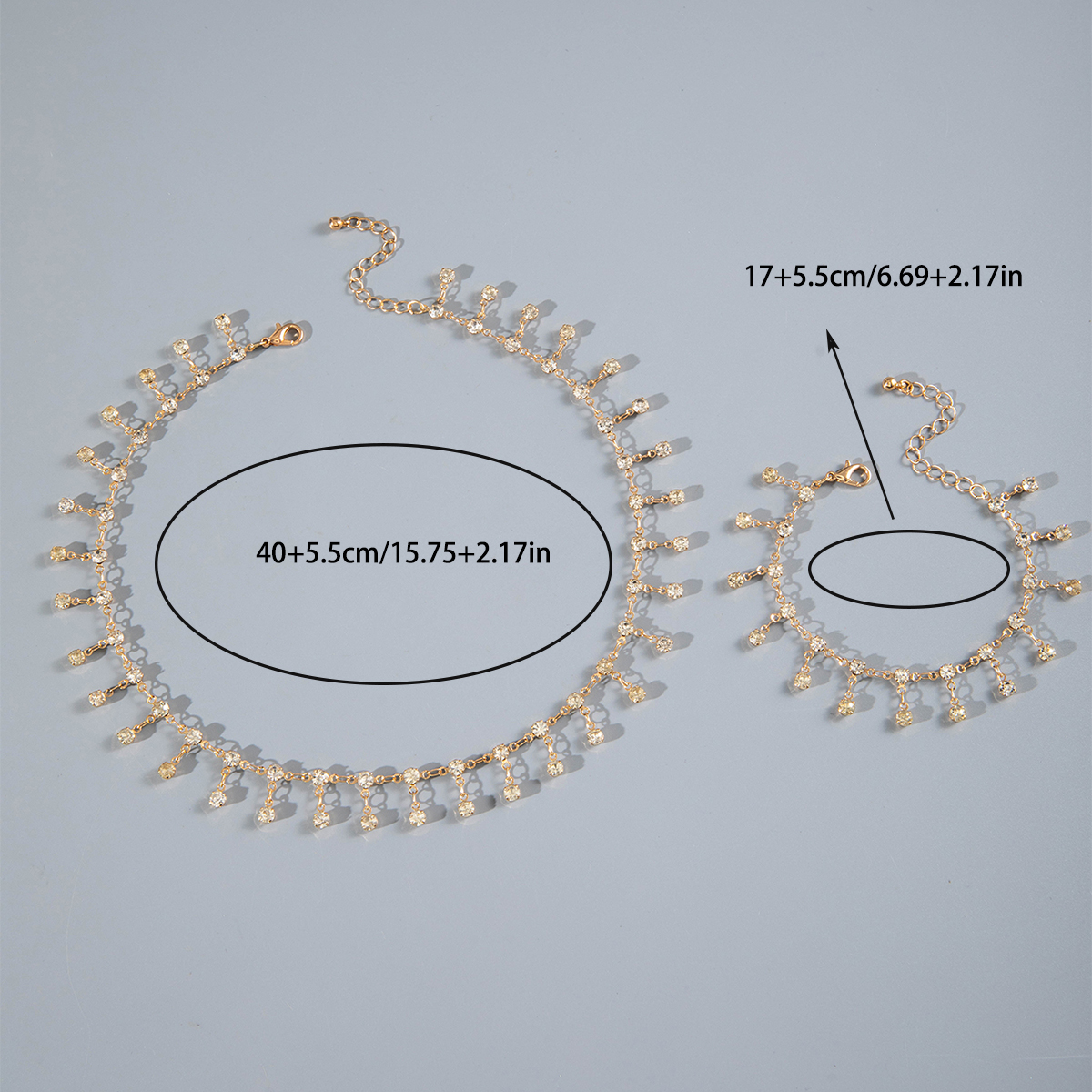 Fleepmart New Trendy Cute And Sweet Zircon Necklace Bracelet Set For Women’s Summer Simple Crystal Collarbone Chain Necklace Gift