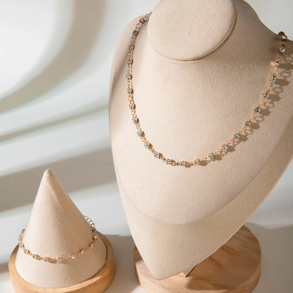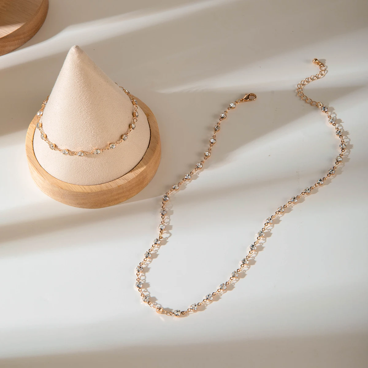 Fleepmart New Trendy Cute And Sweet Zircon Necklace Bracelet Set For Women’s Summer Simple Crystal Collarbone Chain Necklace Gift