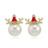 Fleepmart New Trendy Rhinestone Imitation Pearl Snowflake Bell Elk Christmas Hat Stud Earrings For Women Christmas Jewelry Accessories