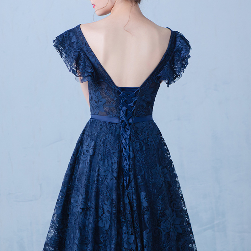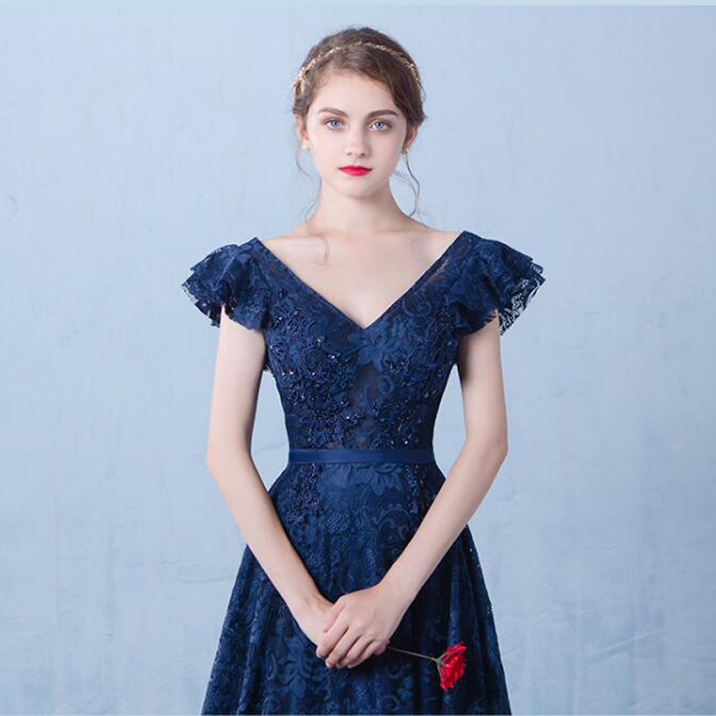 Fleepmart New Vintage Evening Dress Navy Blue Tulle Sexy V Neck A-Line Long Prom Party Gowns