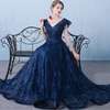 Fleepmart New Vintage Evening Dress Navy Blue Tulle Sexy V Neck A-Line Long Prom Party Gowns