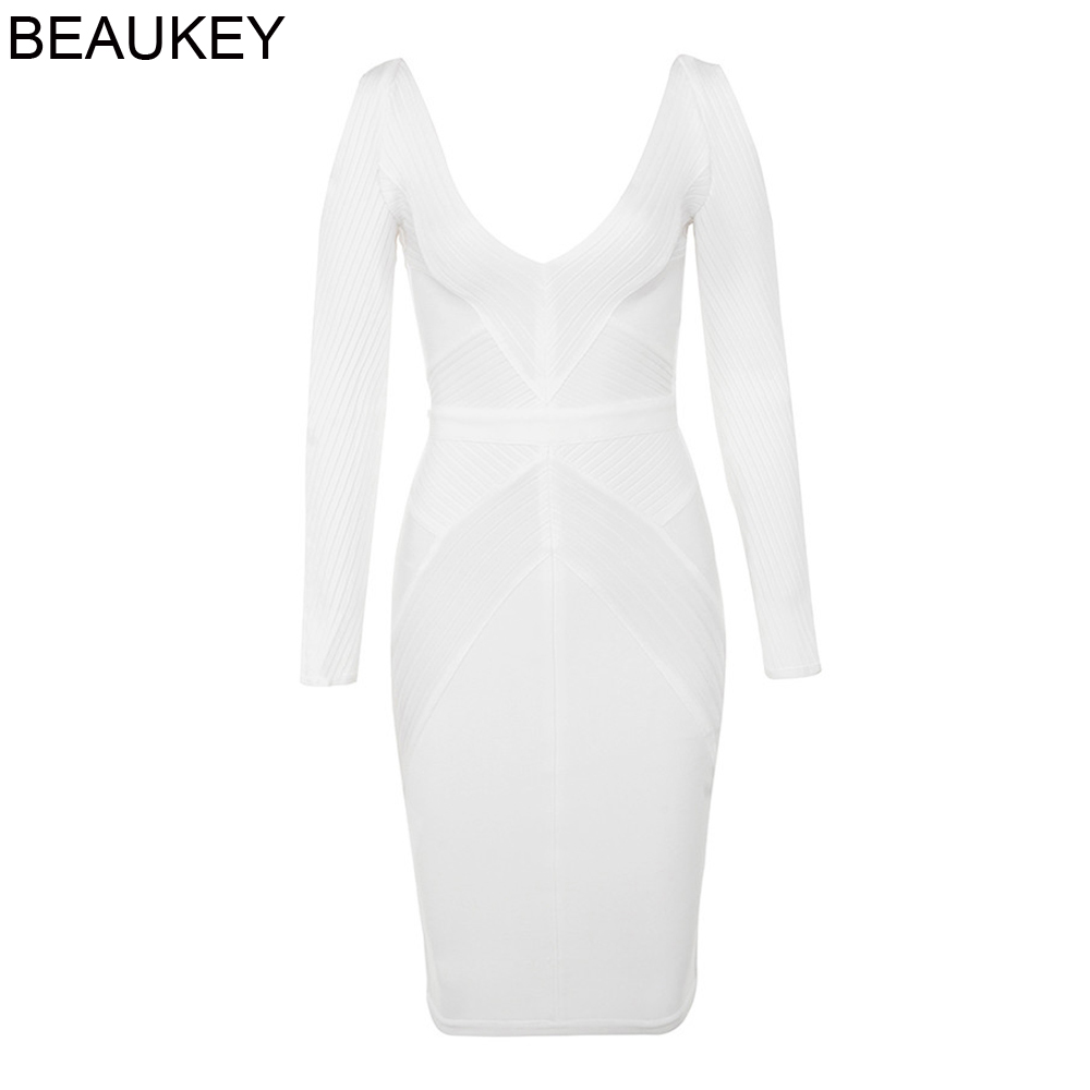 Fleepmart New White Bandage Dress Long Sleeve Hollow Out 2021 Sexy Women V Neck Geometric Party Dress Plus Size XL wholesale