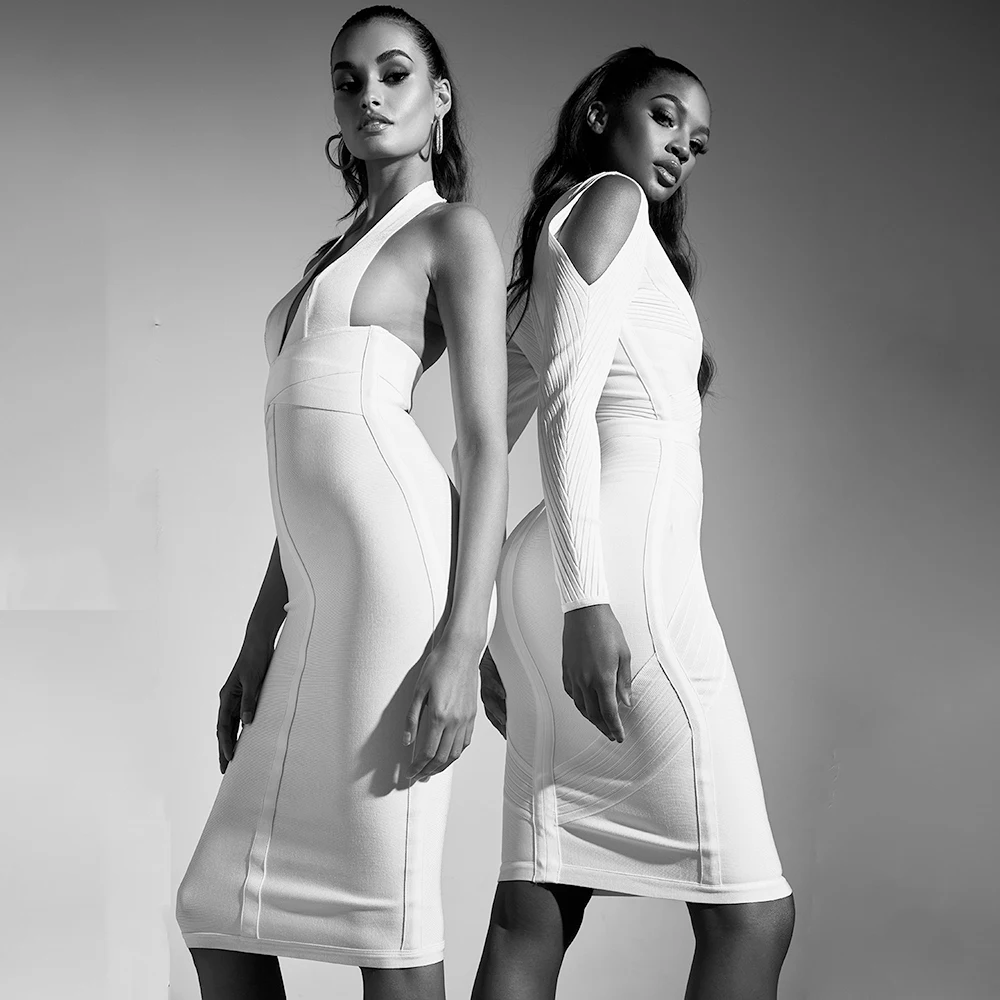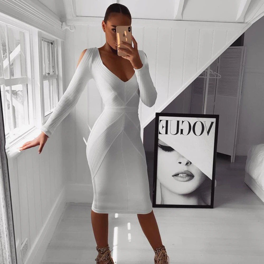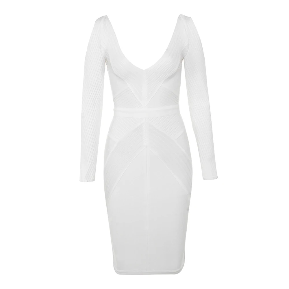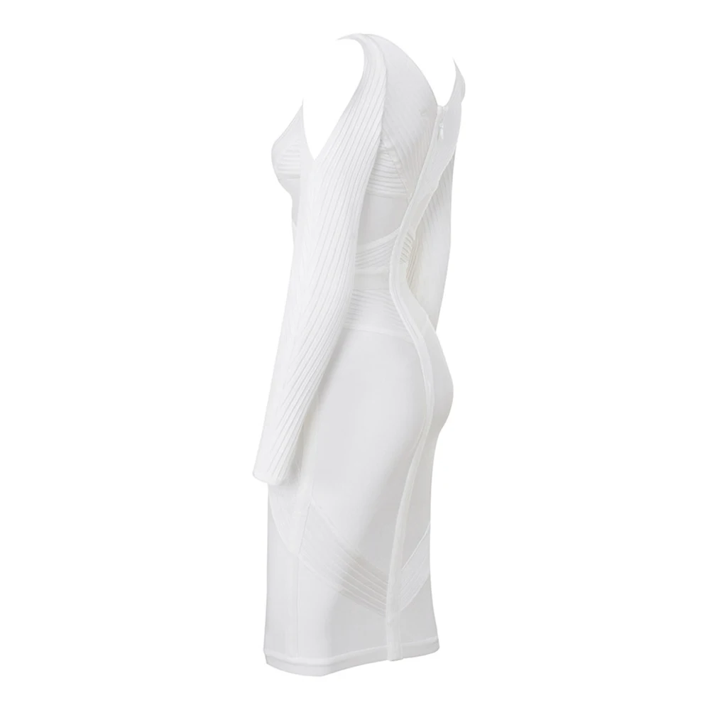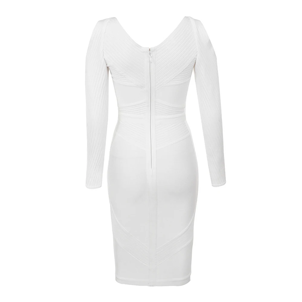 Fleepmart New White Bandage Dress Long Sleeve Hollow Out 2021 Sexy Women V Neck Geometric Party Dress Plus Size XL wholesale