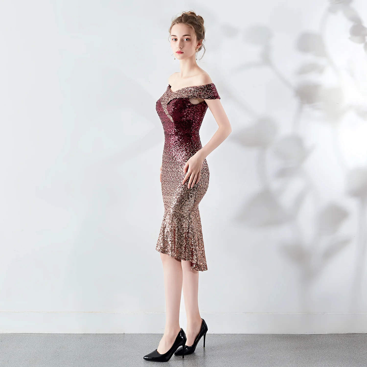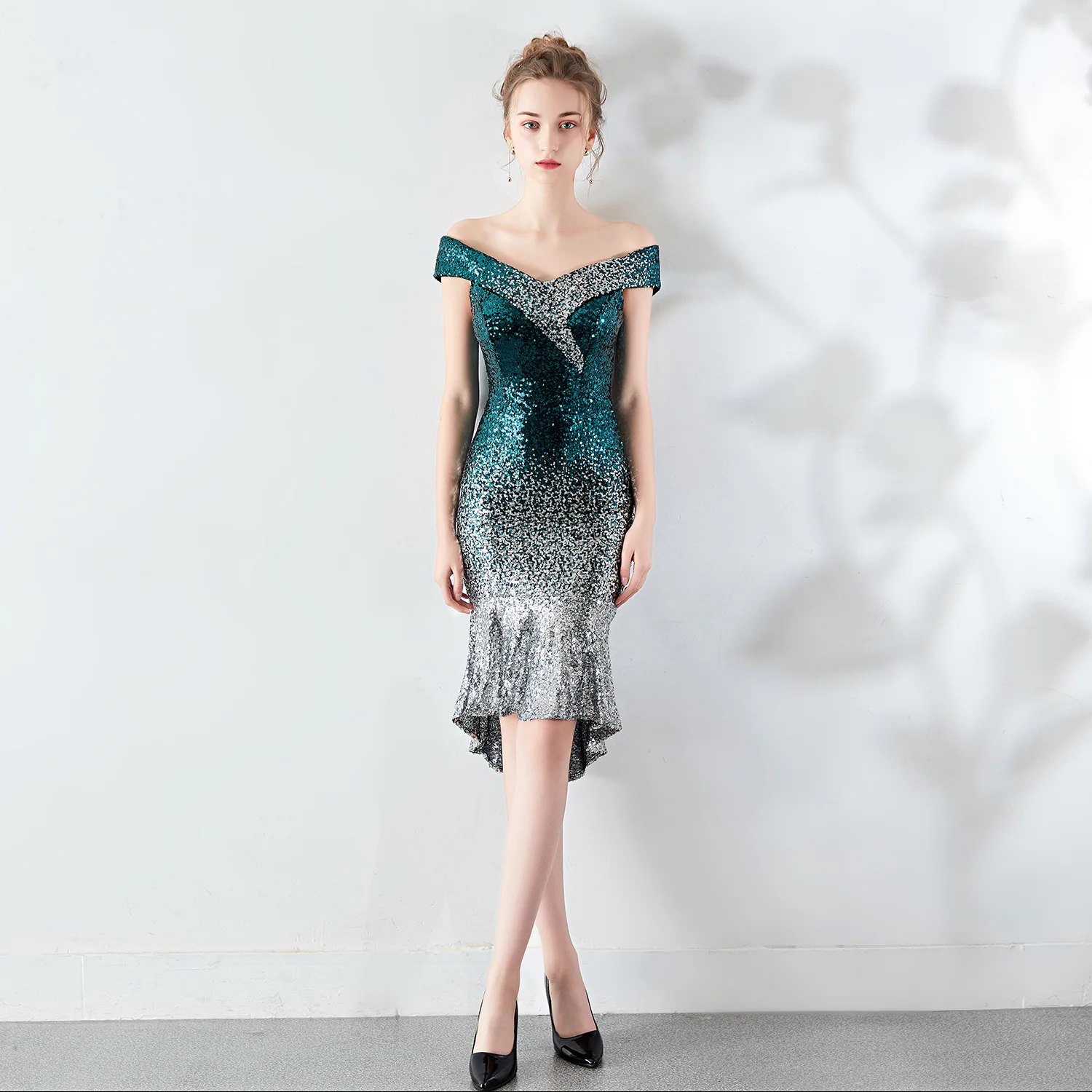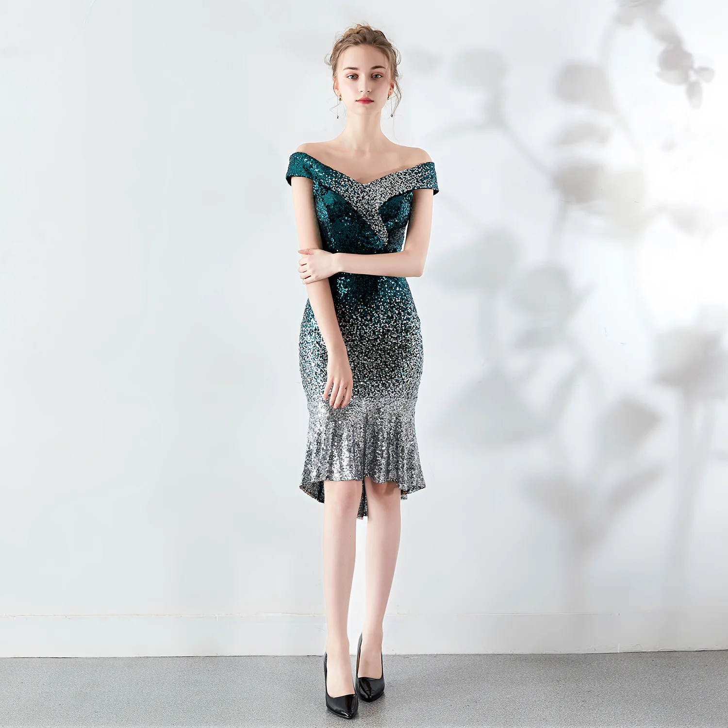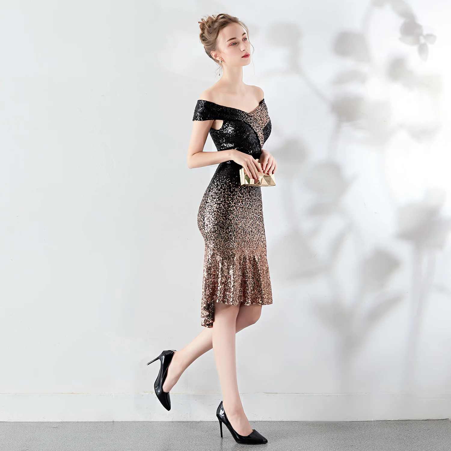 Fleepmart New Women Elegant Short Sequin Prom Dress Knee Length Sparkle Evening Party Dress