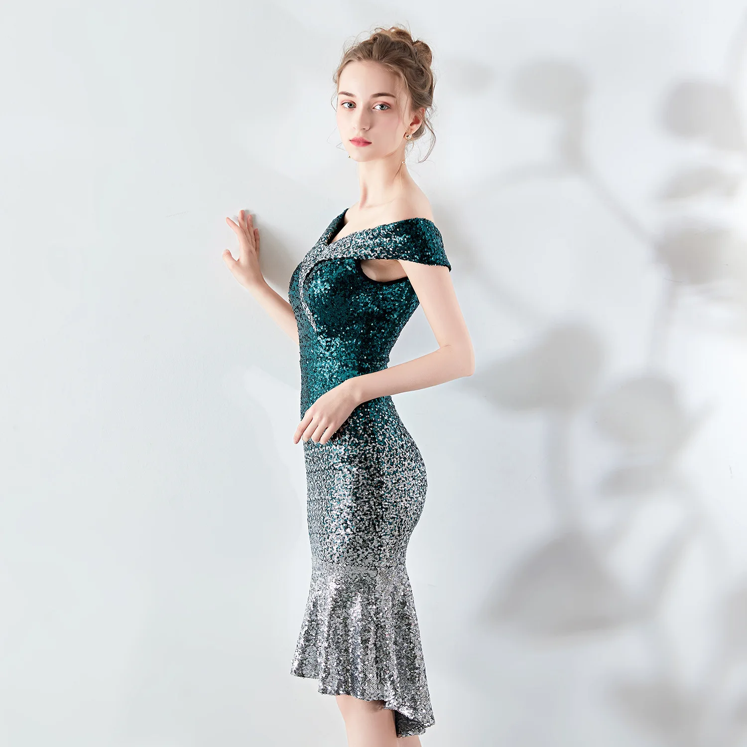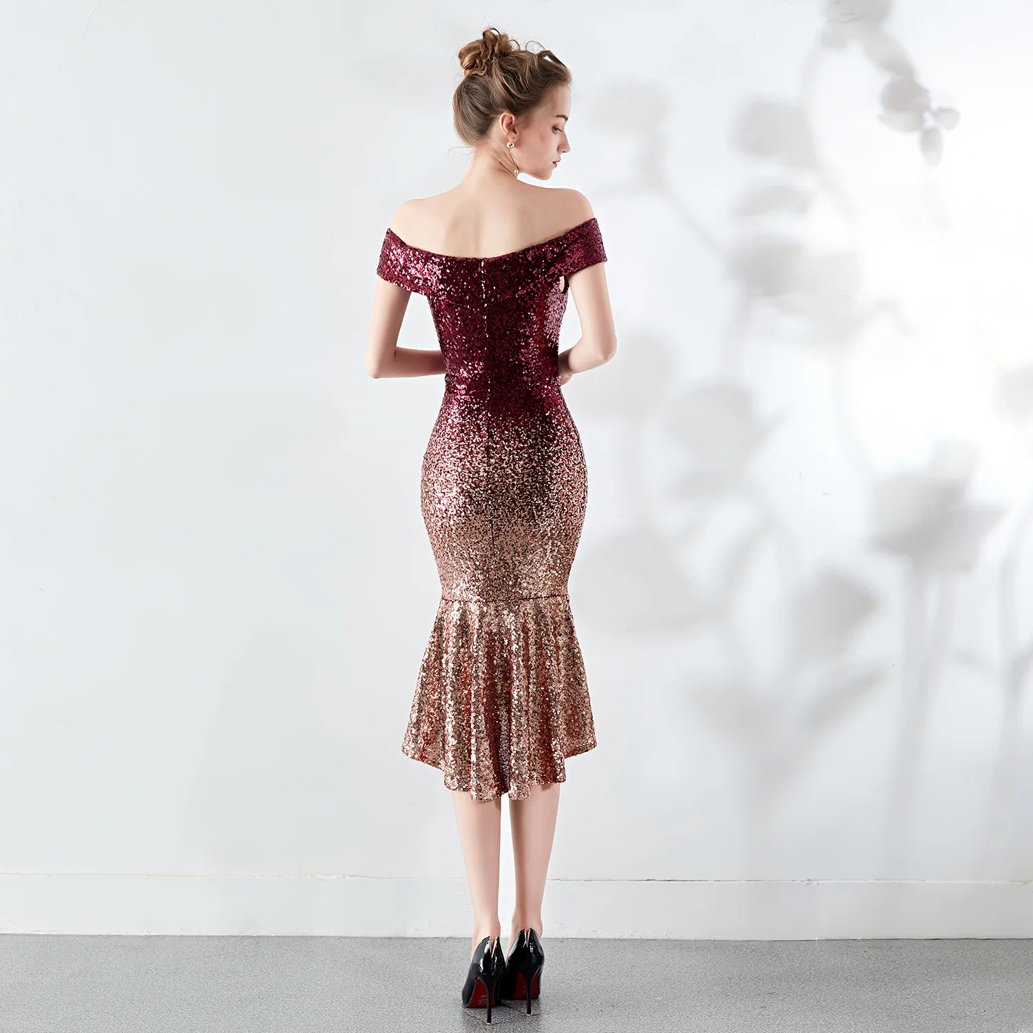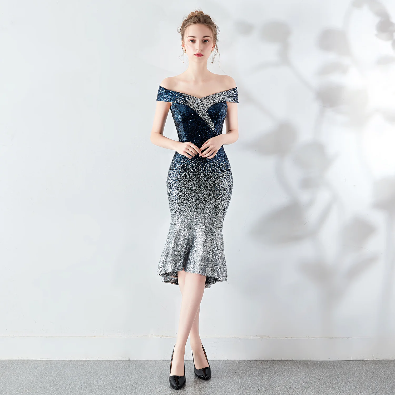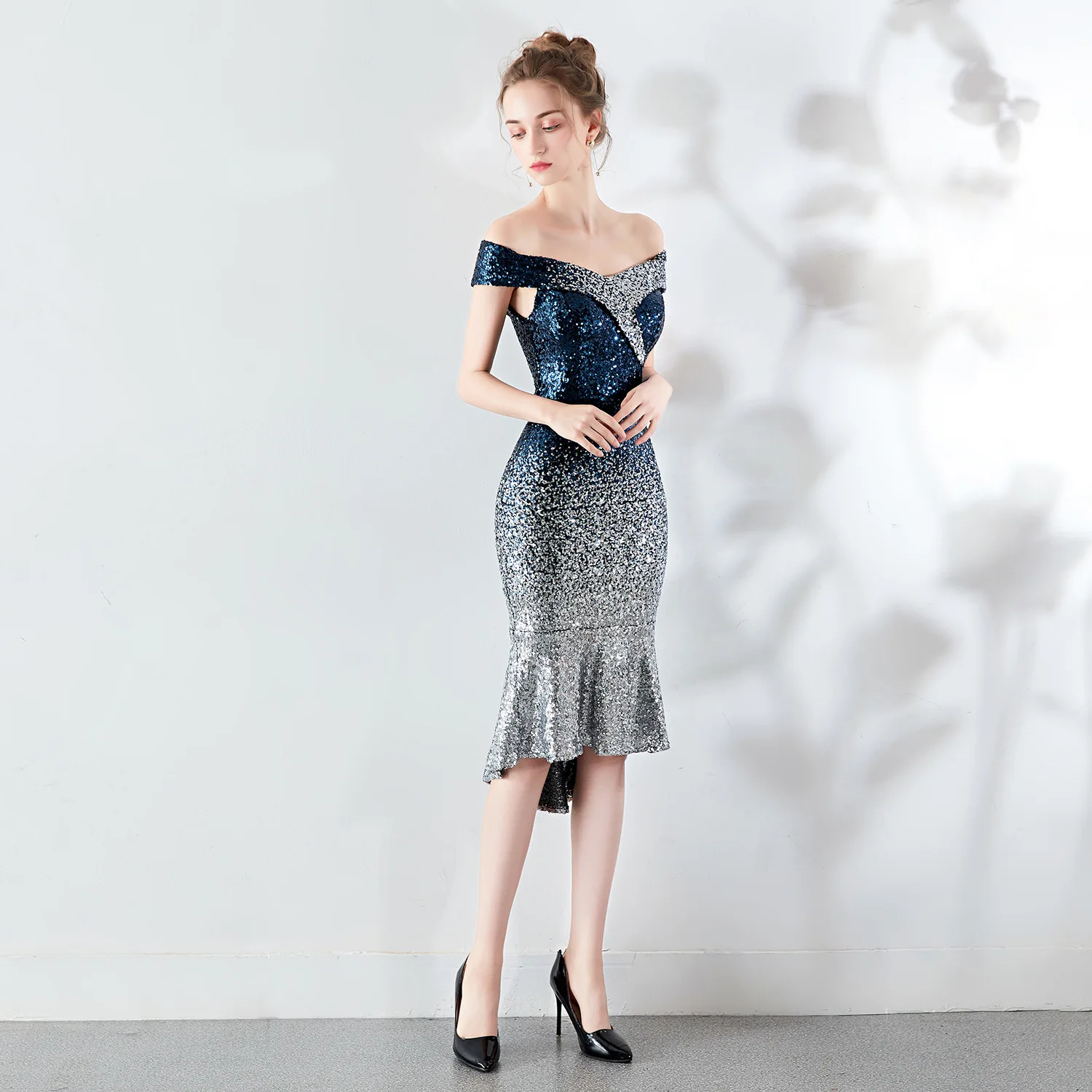 Fleepmart New Women Elegant Short Sequin Prom Dress Knee Length Sparkle Evening Party Dress