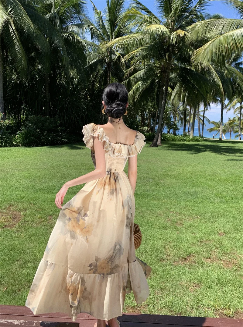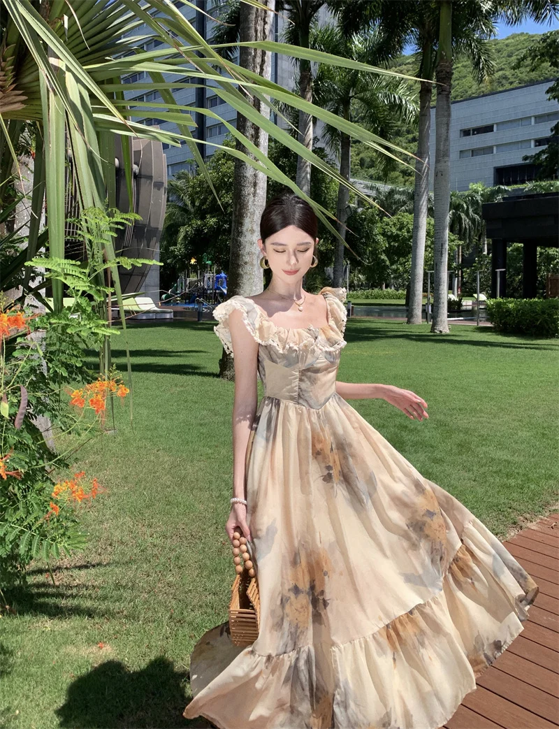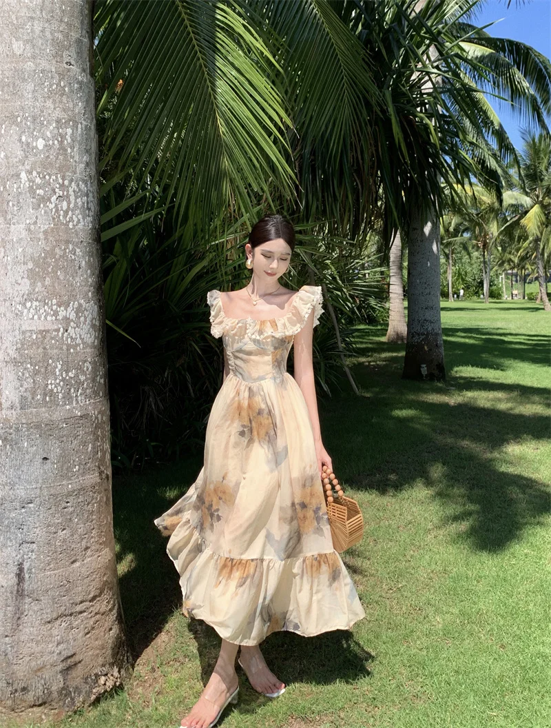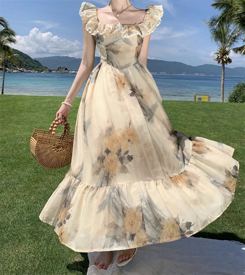Fleepmart New Women Fashion Elegant Casual Floral Summer Dress Vintage Chic A-Line Party Birthday Clothes Female One Pieces Vestidos Robe