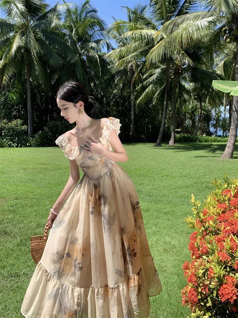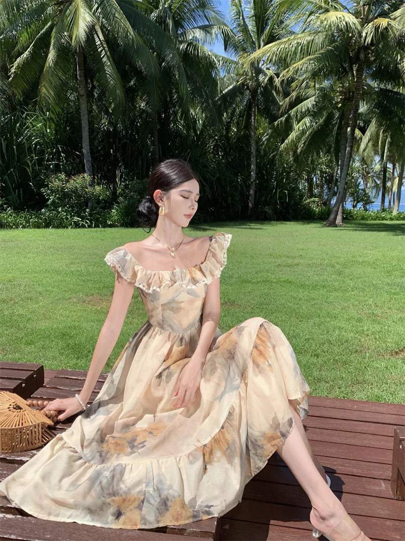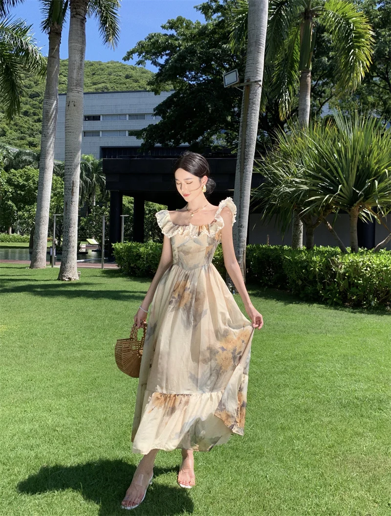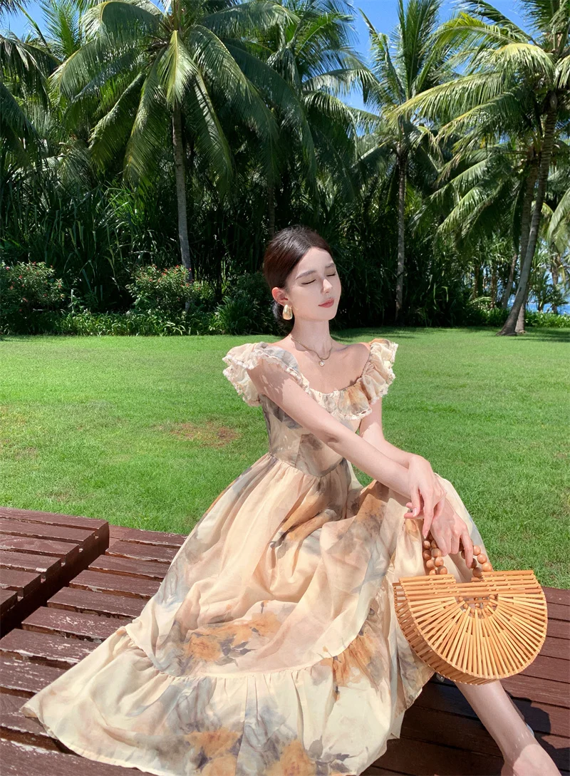 Fleepmart New Women Fashion Elegant Casual Floral Summer Dress Vintage Chic A-Line Party Birthday Clothes Female One Pieces Vestidos Robe