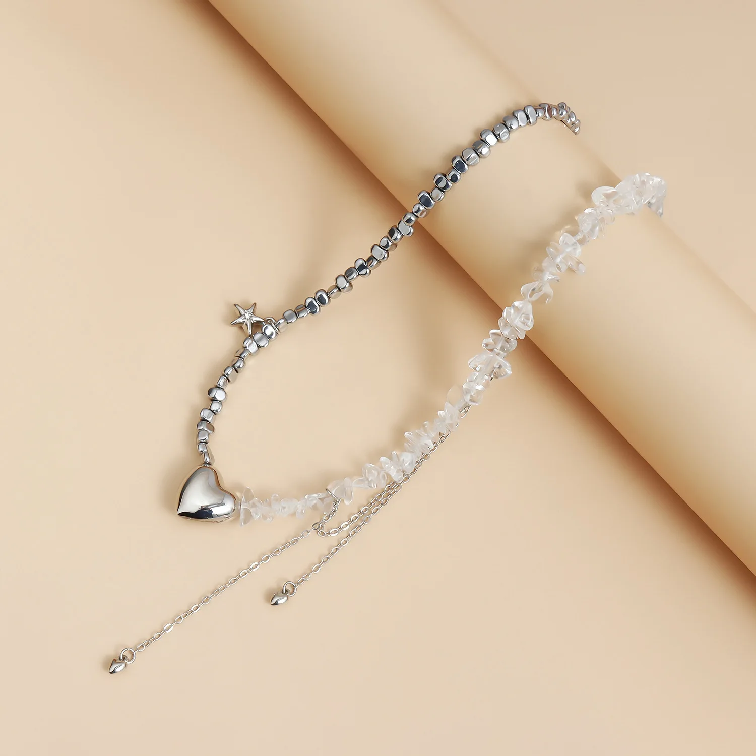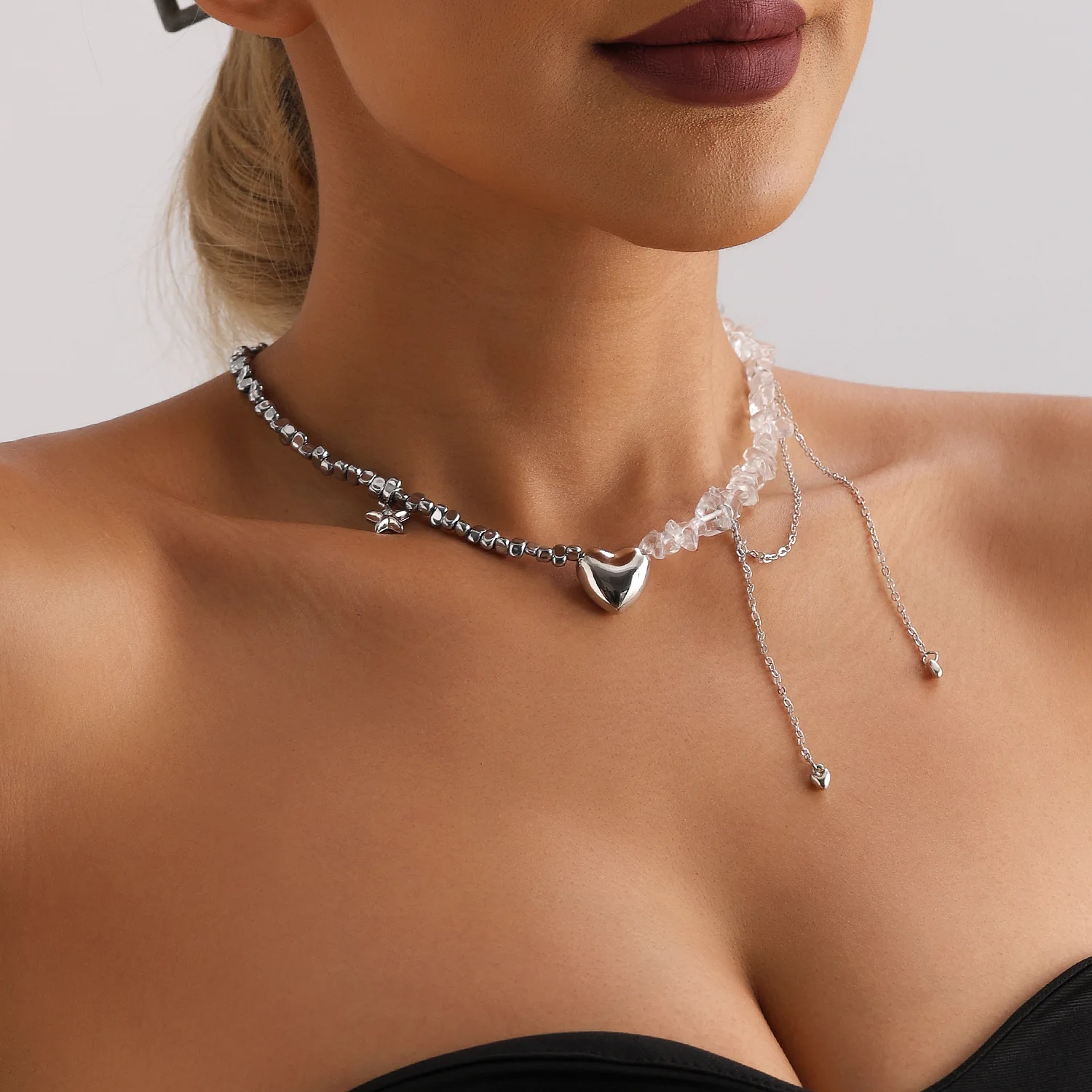 Fleepmart New Y2K Heart Beaded Necklace Women Boho Crystal Class Gravel Clavicle Chain Cool Y2K Choker Exquisite Fashion Jewelry