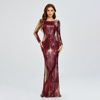Fleepmart O-neck Long-Sleeve Shinning Sequins Evening Dresses Sexy Backless Mermaid Party Gowns Maxi Elegant Multi Female Robes vestidos