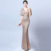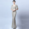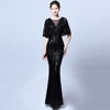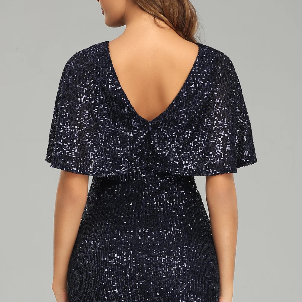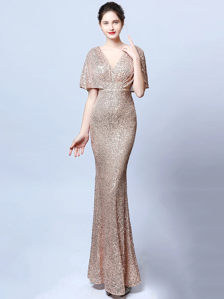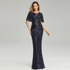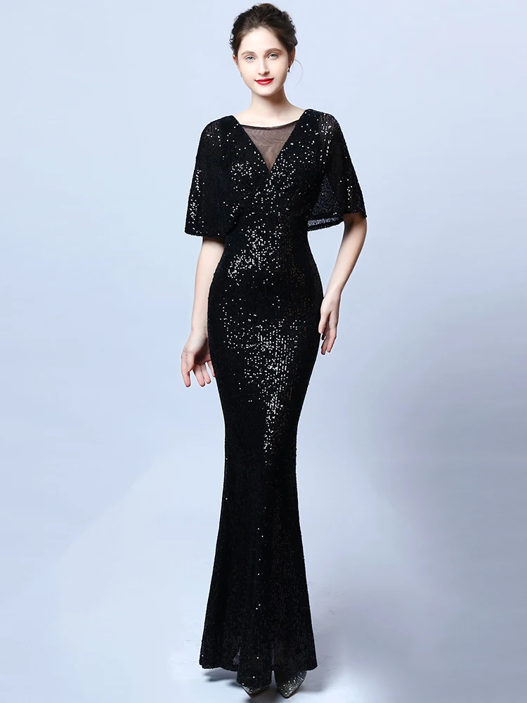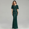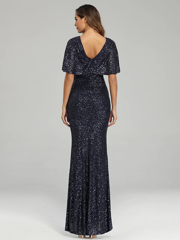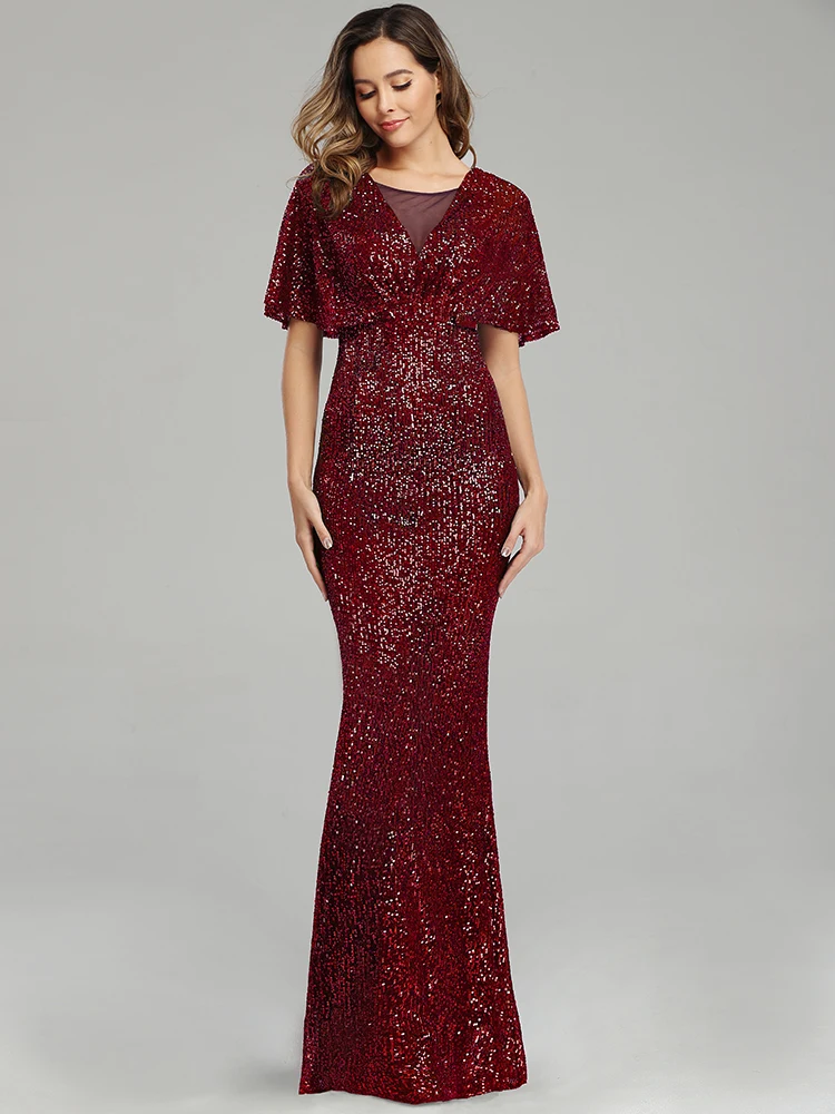 Fleepmart O-neck Sequinds Evening Dress V-Back Formal Dress for Women Short-Sleeves Mermaid Robe De Soriee Elegant Party Gowns Long Dress