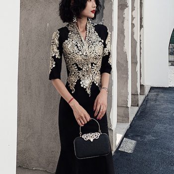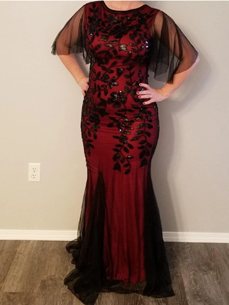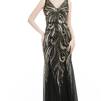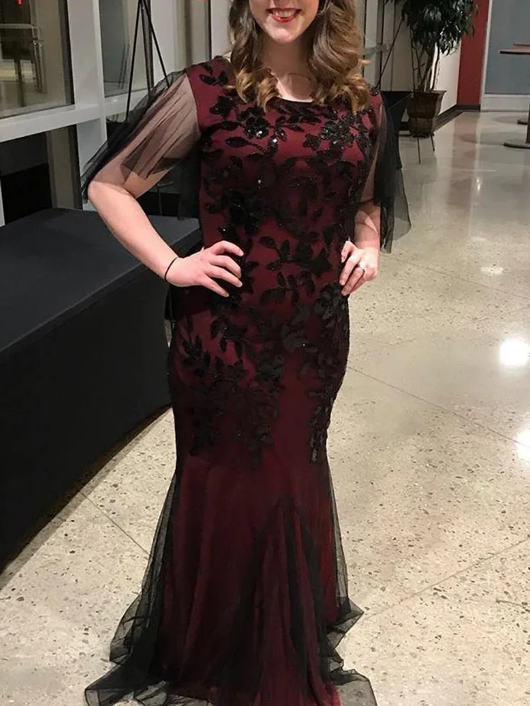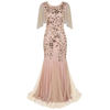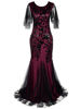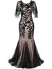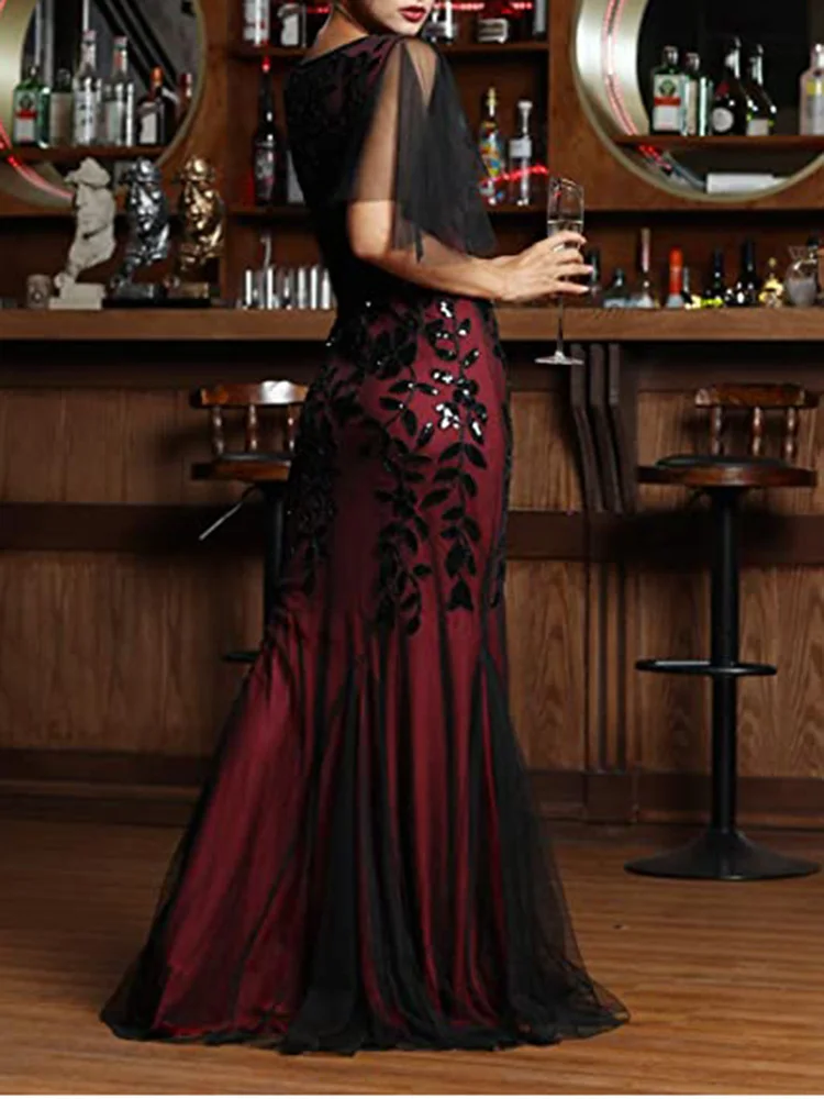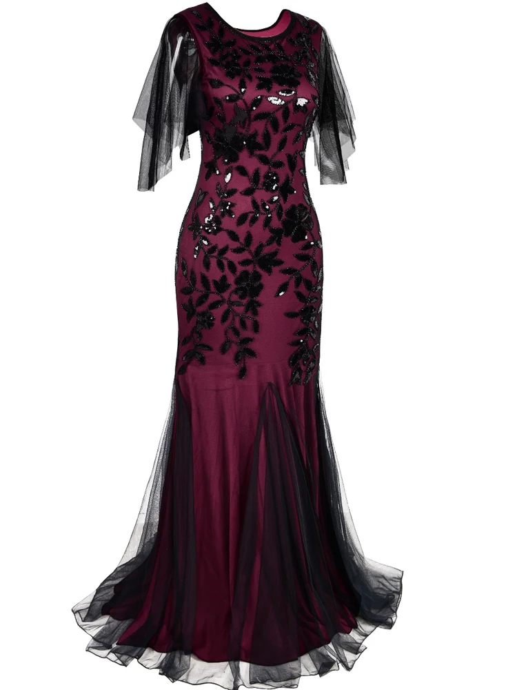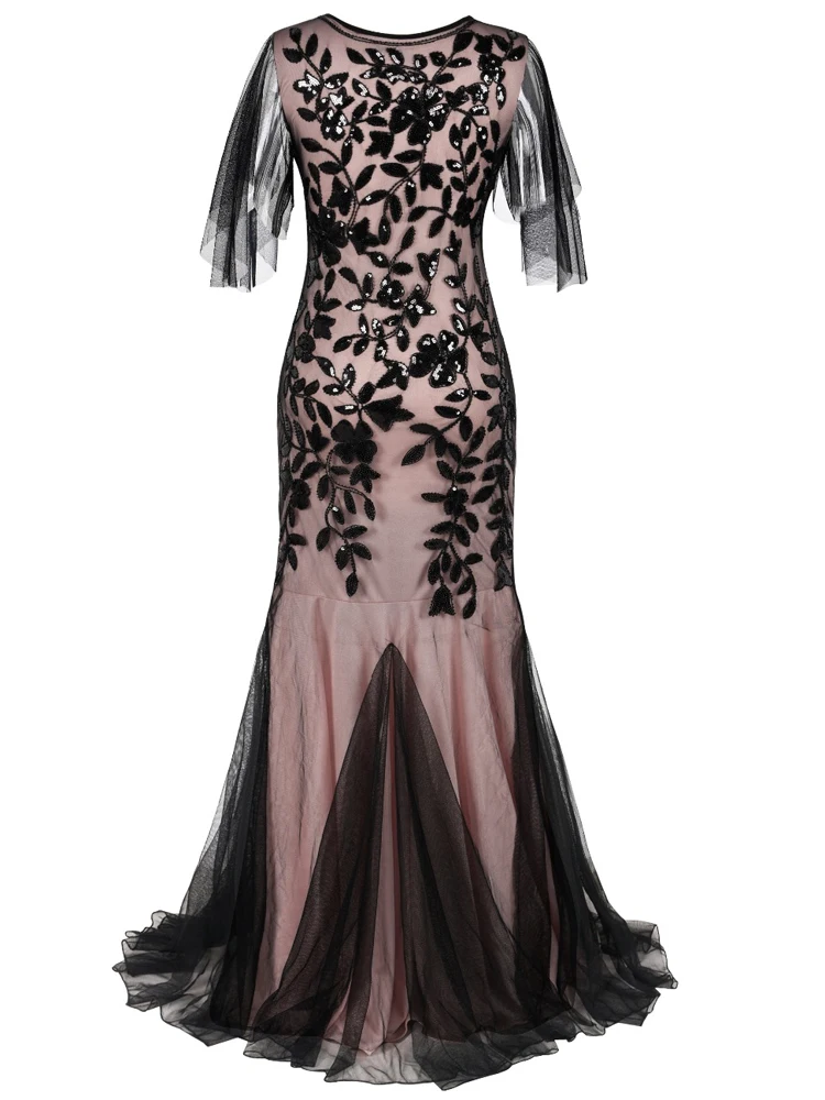 Fleepmart O-neck Short-Sleeve Tulle Embroider Evening Dress Elegant Mermaid Vintage 1920s Party Dress Great Gatsby Sequin Dress Long
