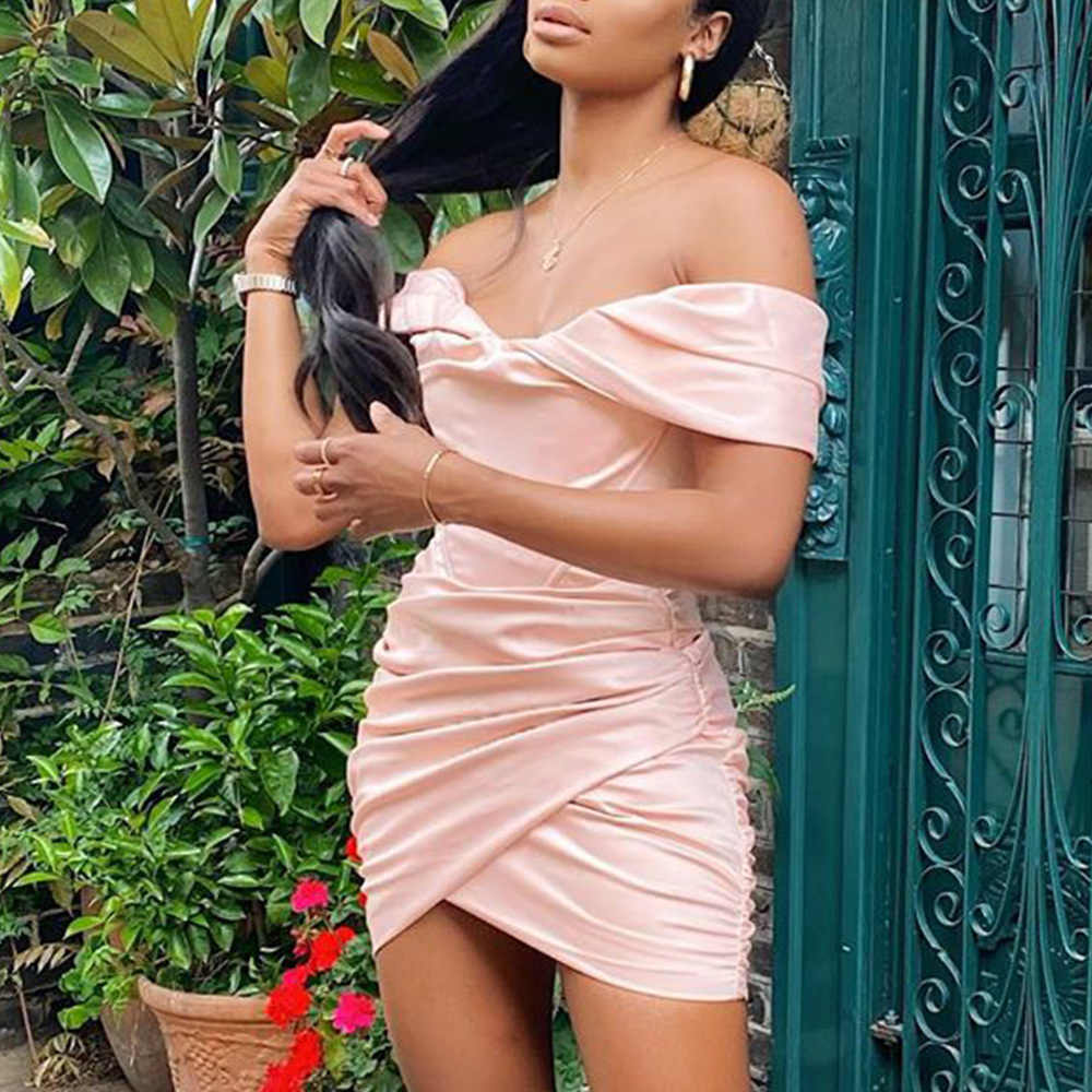 Fleepmart Off Shoulder Backless Sexy Dresses Women Mini Summer Dress Pink Strapless Bodycon Night Club Party Dress Vestidos