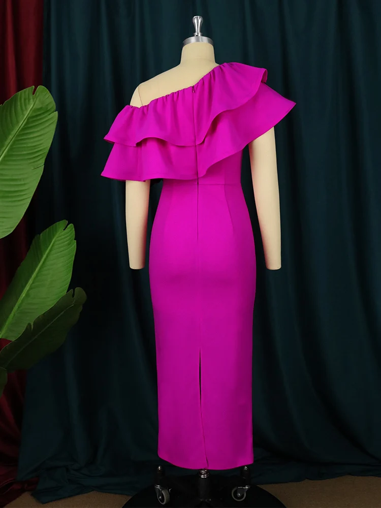 Fleepmart Off Shoulder Dresses Women Sexy Bodycon Midi Evening Cocktail Party Ruffle Outfits for Ladies African Summer Gowns 4XL 3XL