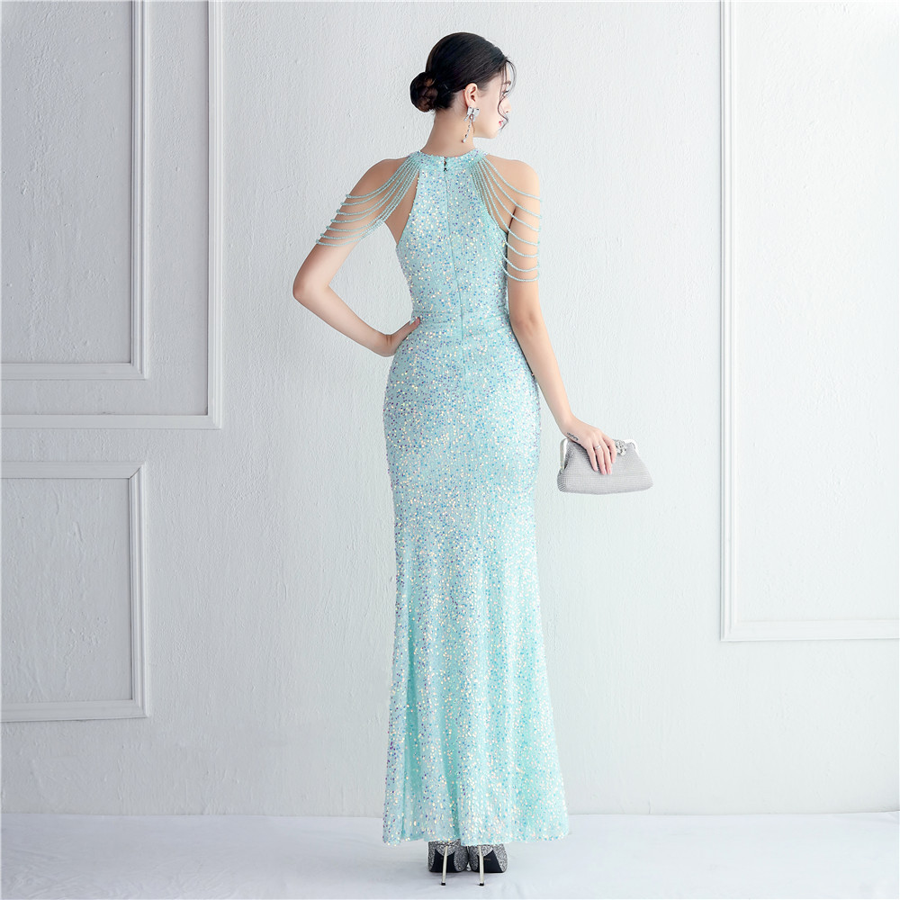 Fleepmart Off Shoulder Long Beading Gold Sequin Dress Sexy Slit Party Dress Women Evening Dress