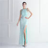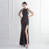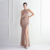 Fleepmart Off Shoulder Long Beading Gold Sequin Dress Sexy Slit Party Dress Women Evening Dress
